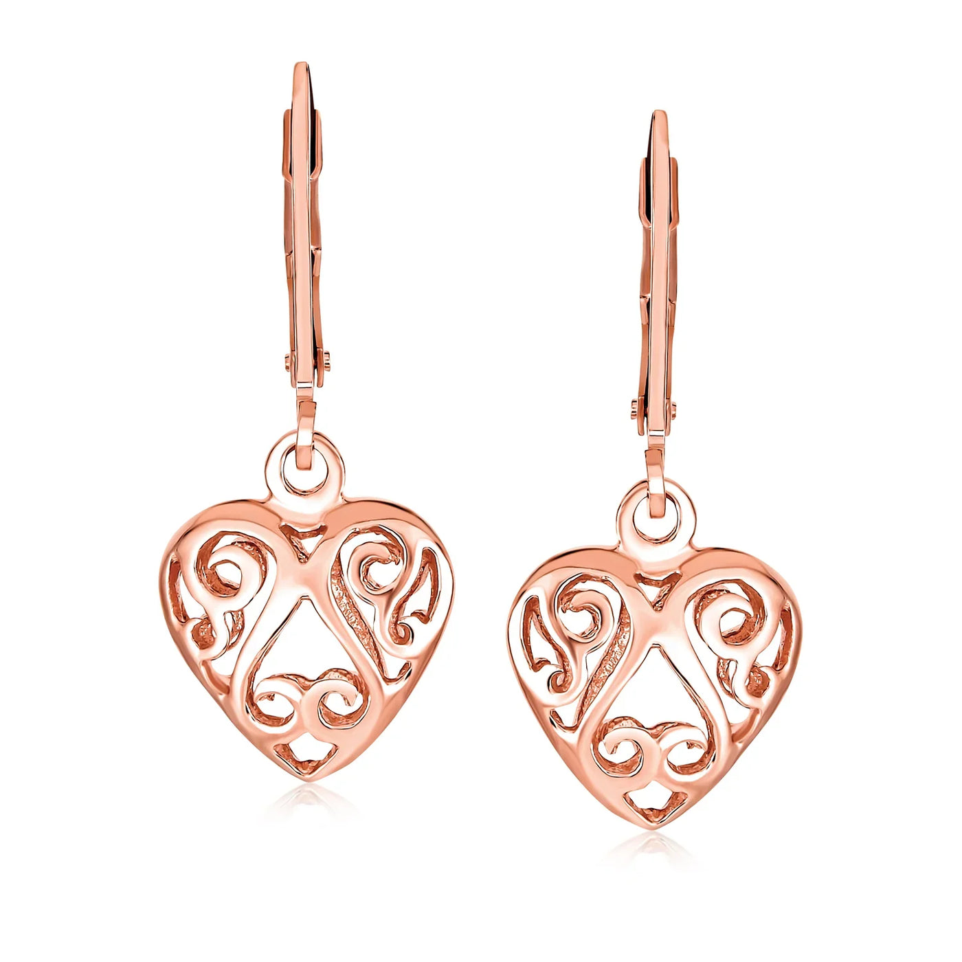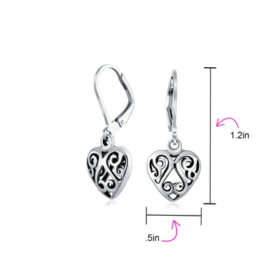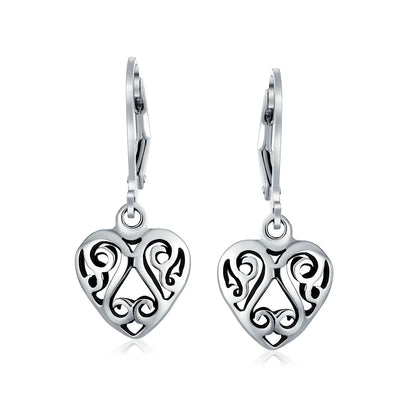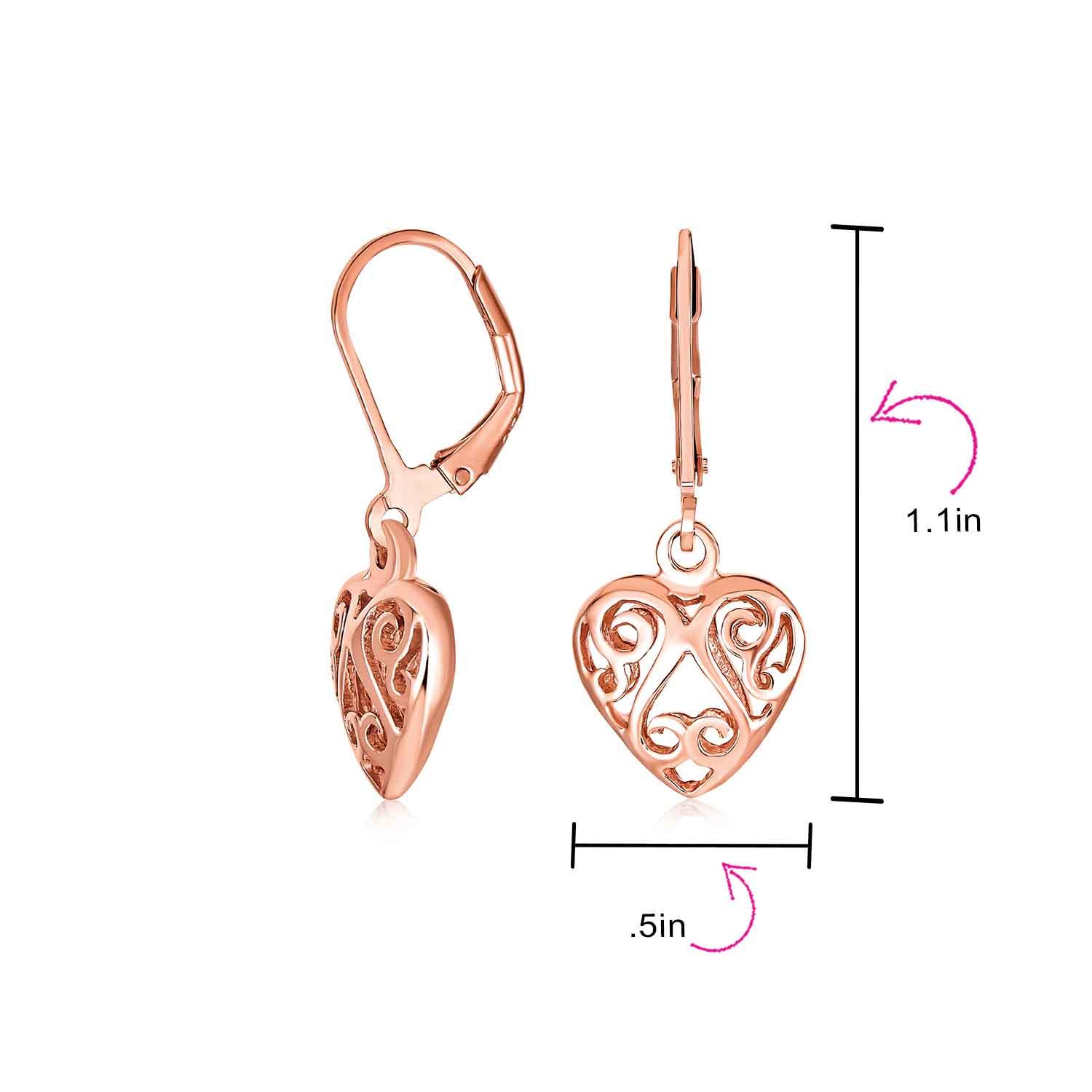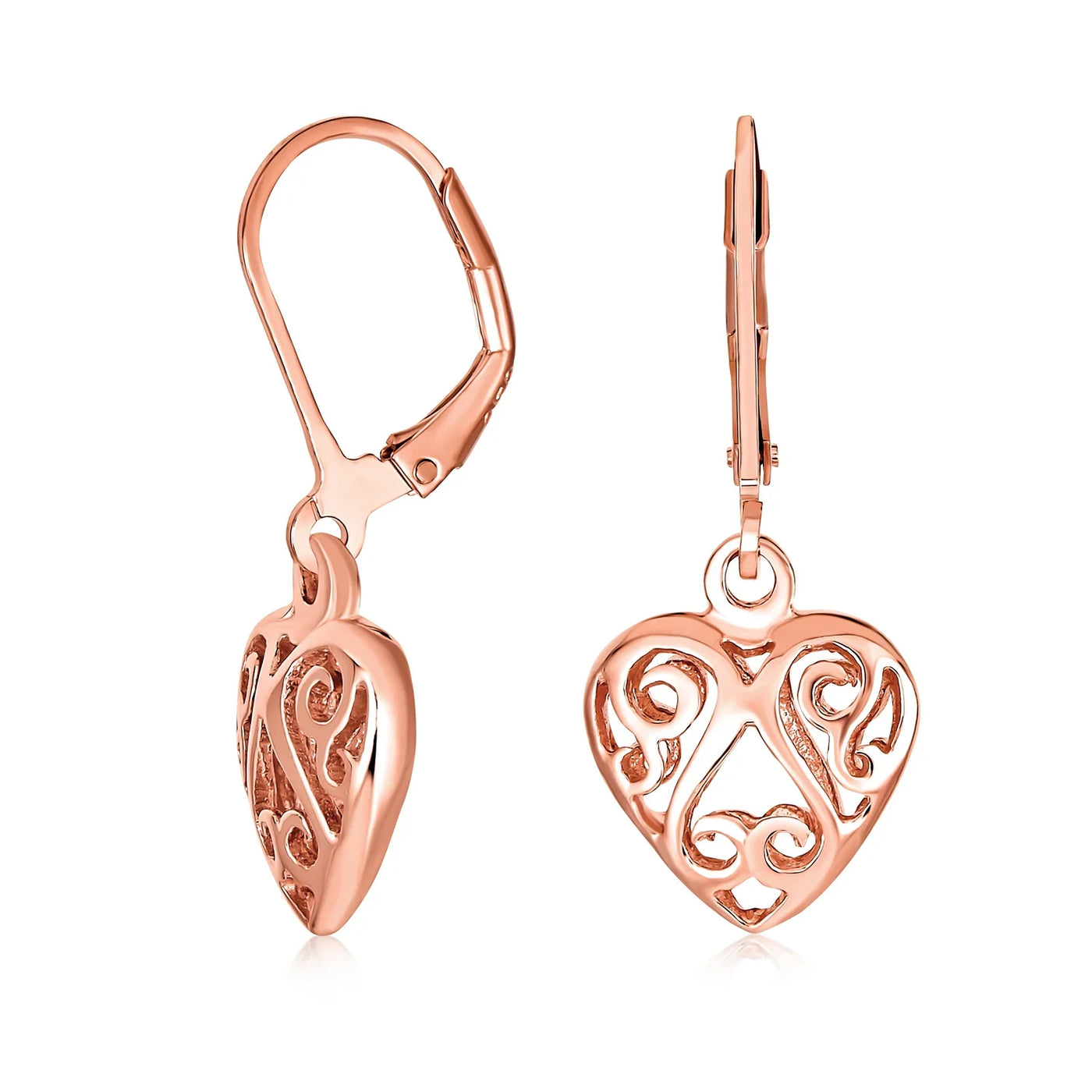 - Show off your romantic side with these stunning filigree drop earrings featuring a heart shape design that is sure to capture her heart.