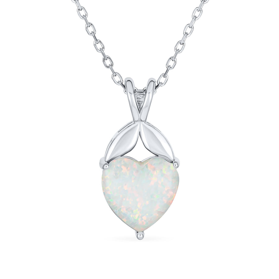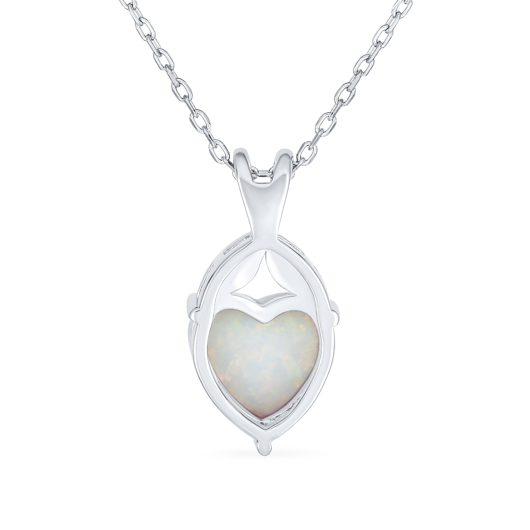 - Show your love with our stunning Created Opal heart pendant. Crafted in polished .925 Sterling Silver, the heart-shaped stone sparkles with multicolor pastels. At ten millimeters long, this delicate jewelry is perfect for casual or evening wear. The .925 Sterling Silver pendant hangs from a delicate rolo chain, ideal for bridal jewelry. The Created White Opal heart complements any gown style beautifully.