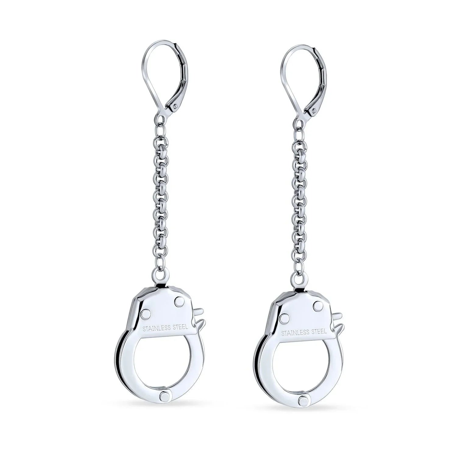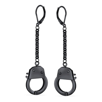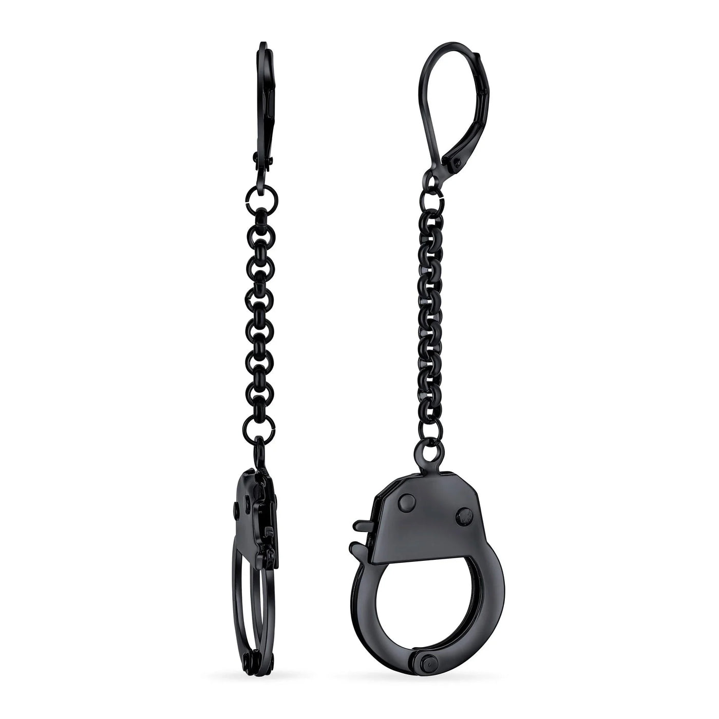 - Add a unique finishing touch to any outfit with our edgy, fetish-themed trendy earrings. Enjoy the latest fashion trend with our handcuff dangling earrings. Despite their bold look, these lightweight lever back earrings are very comfortable. They function perfectly and grab attention. Perfect gift for law enforcement friends or Goth jewelry enthusiasts. Order your pair today!