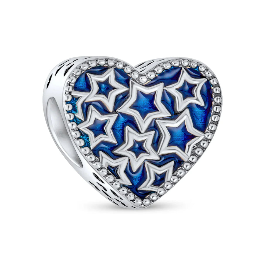 - STUNNING DESIGN - Elevate your bead collection with this captivating charm, showcasing a blue enamel heart adorned with a star motif on both sides. Delicately crafted with intricate hearts beaded along the edges, it's perfect for expressing your patriotic spirit or infusing a touch of celestial elegance.