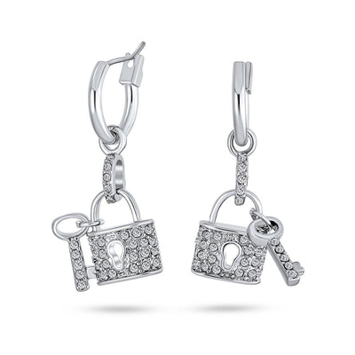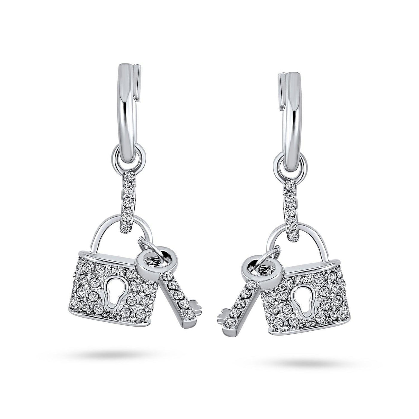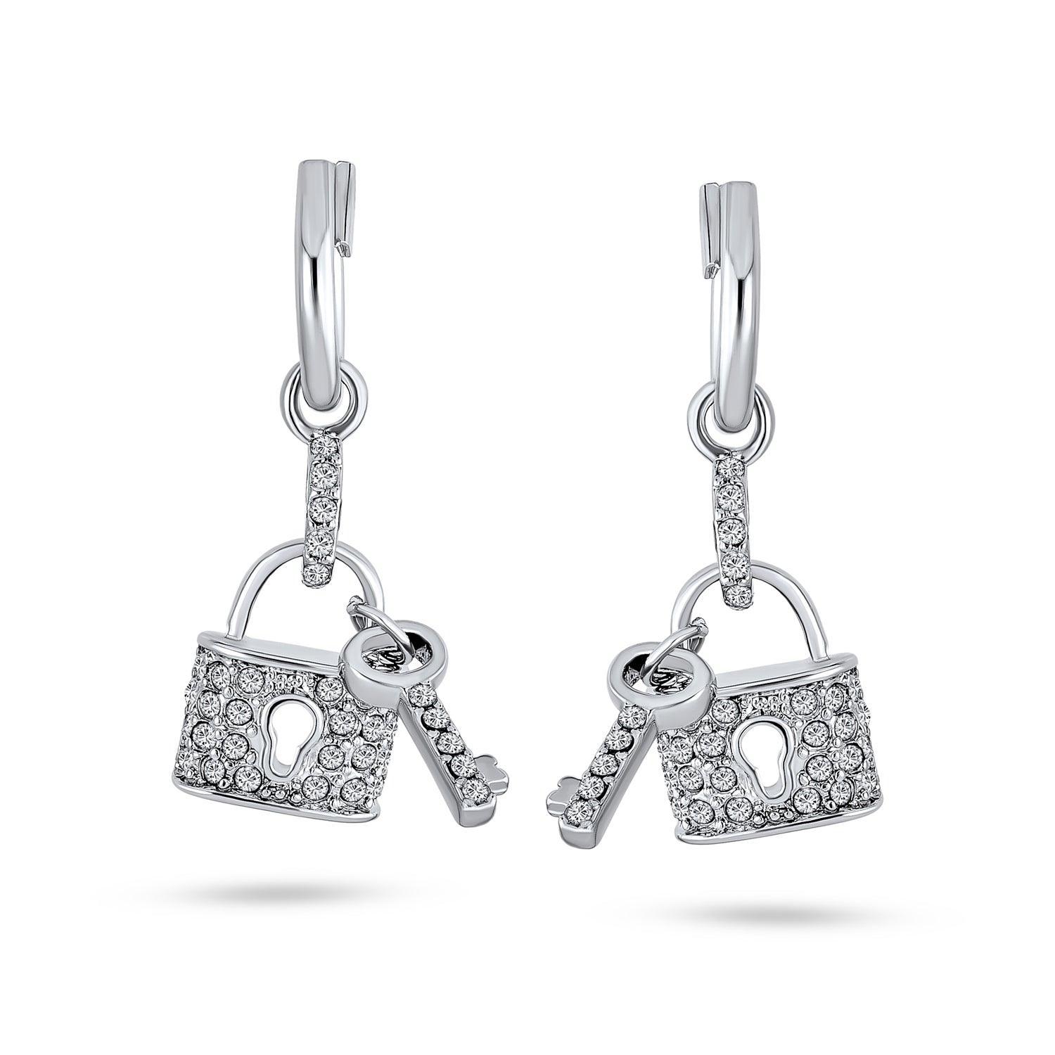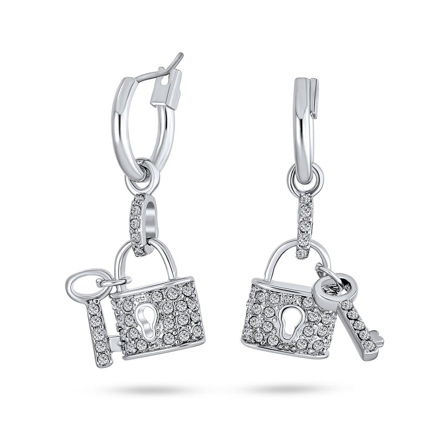 - Just darling, with ethereal whimsy, choose these huggie hoop dangle earrings to show the depth of your love for your sweetheart. Glistening pave crystal and silver plated brass, lock and keys dangle gracefully, adding that extra dash of charm to any look.