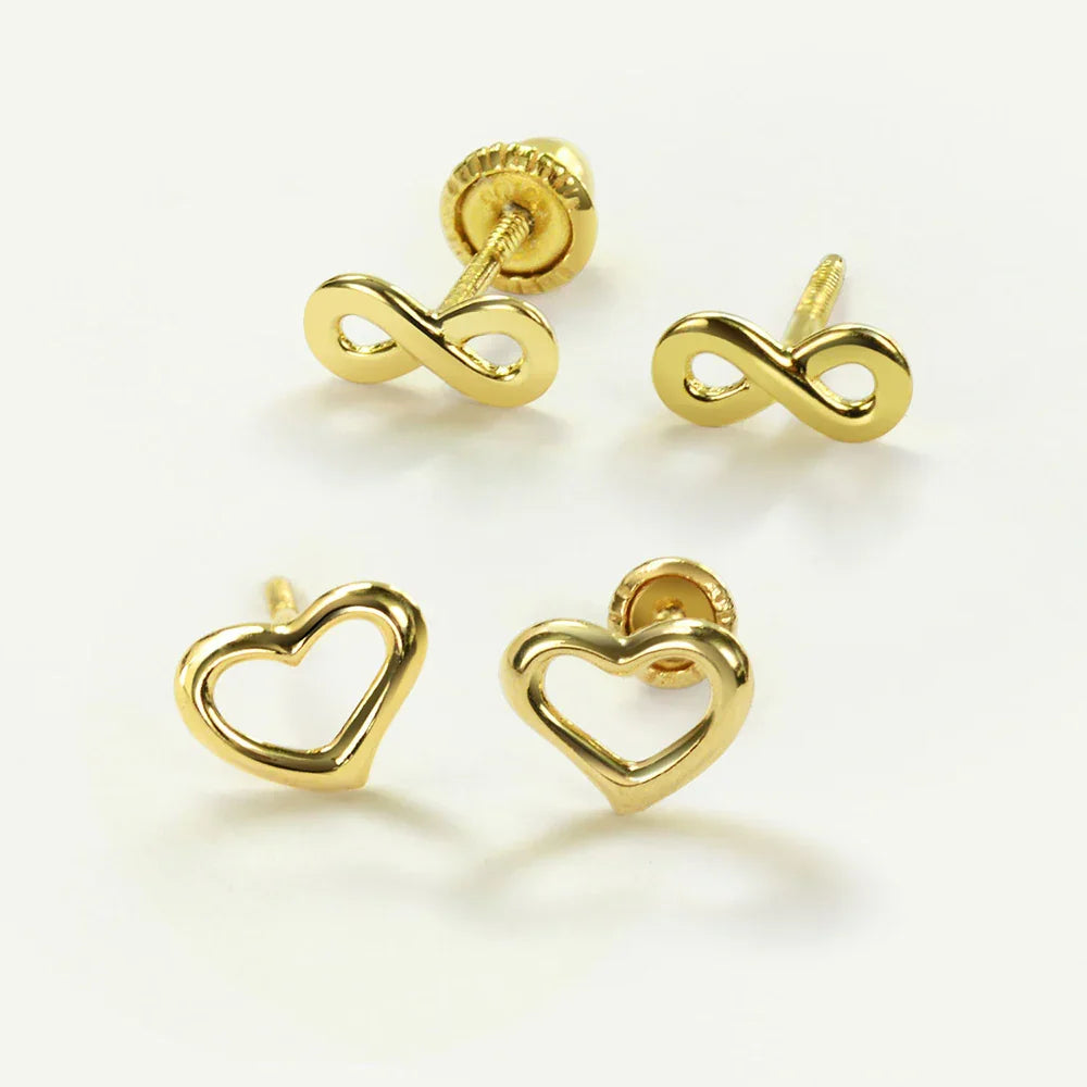 Petite 14K Gold Infinity Stud Earrings Secure Screwback