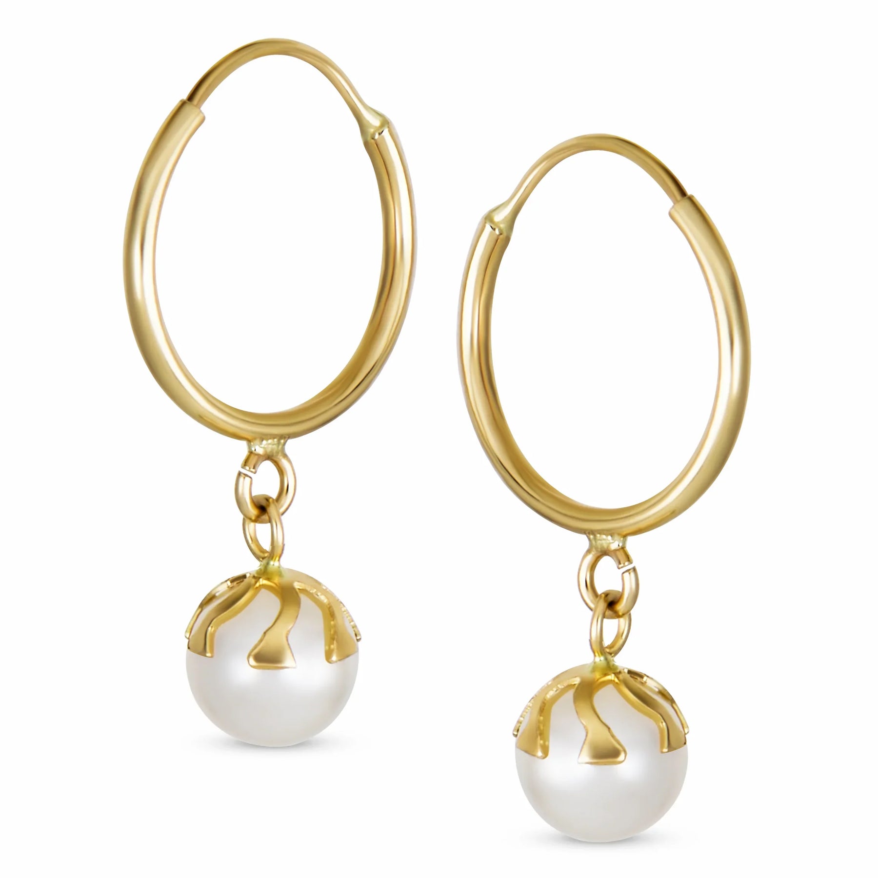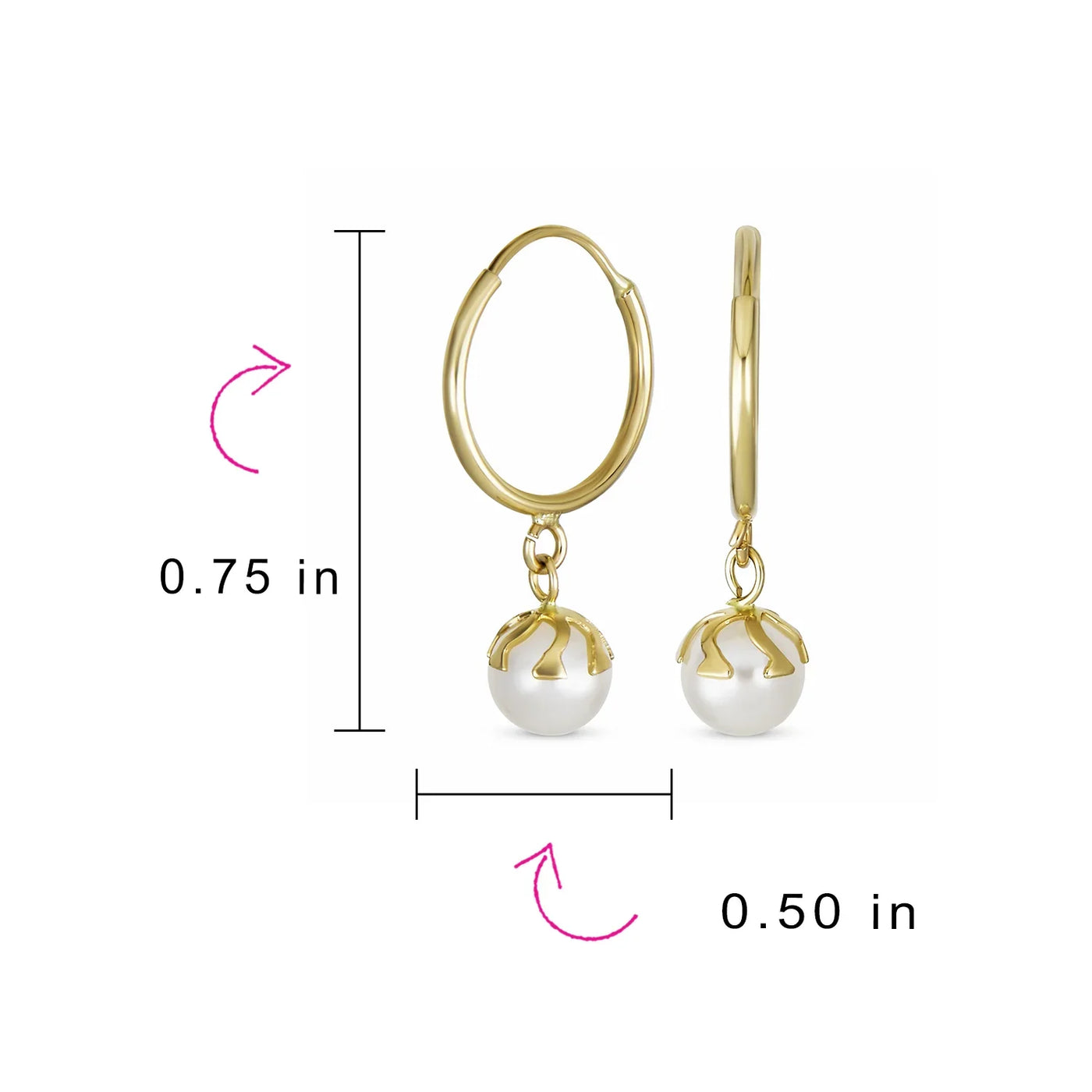 - Shine with radiance in these elegant round white pearl dangle mini hoop earrings, featuring a beautifully-sized 4.5mm freshwater cultured white pearl. Perfect for daily wear, these delicate 10K gold June birthstone earrings are a timeless addition to your jewelry collection. Every pearls is unique in this world. Every one is different, We do our best to find identical pairs.