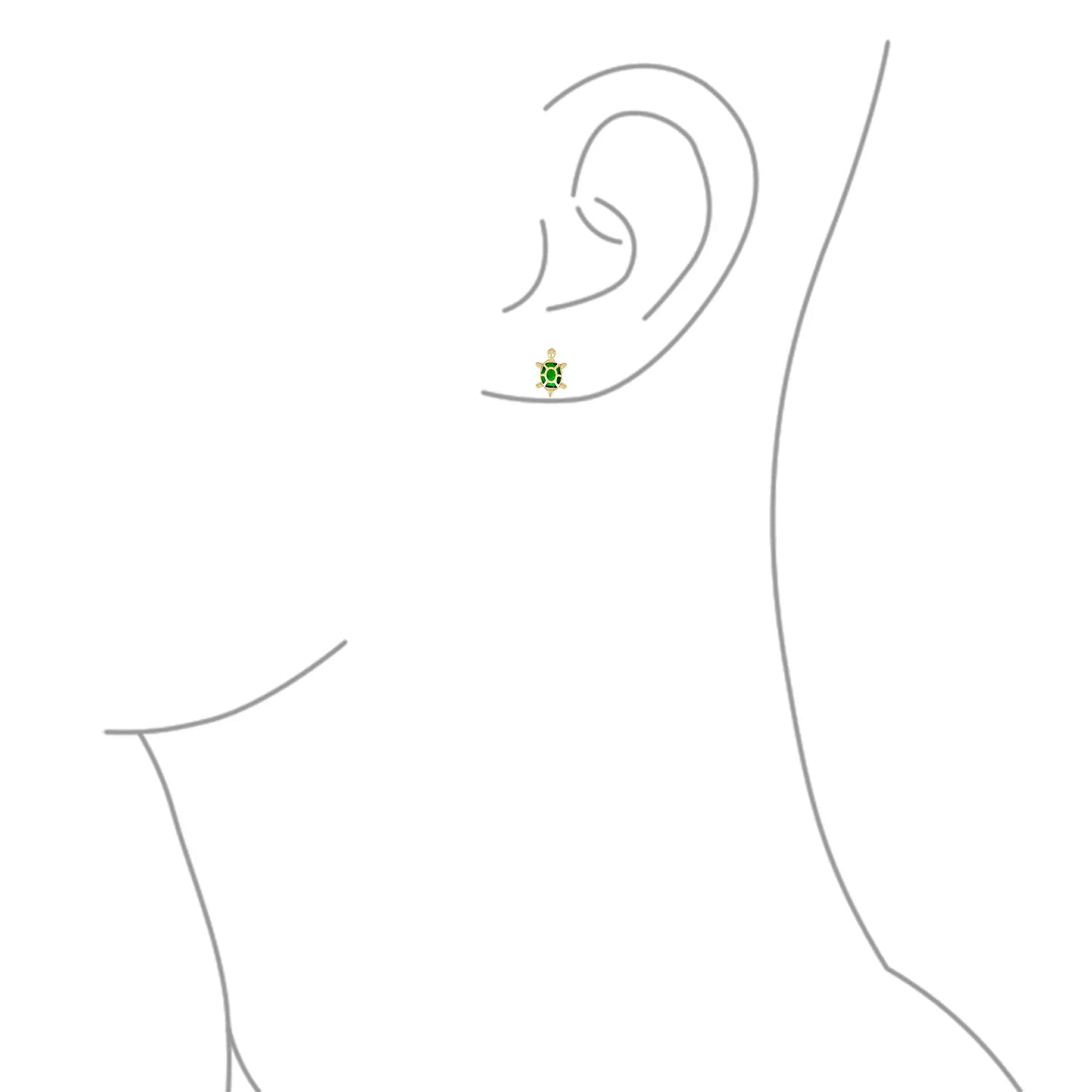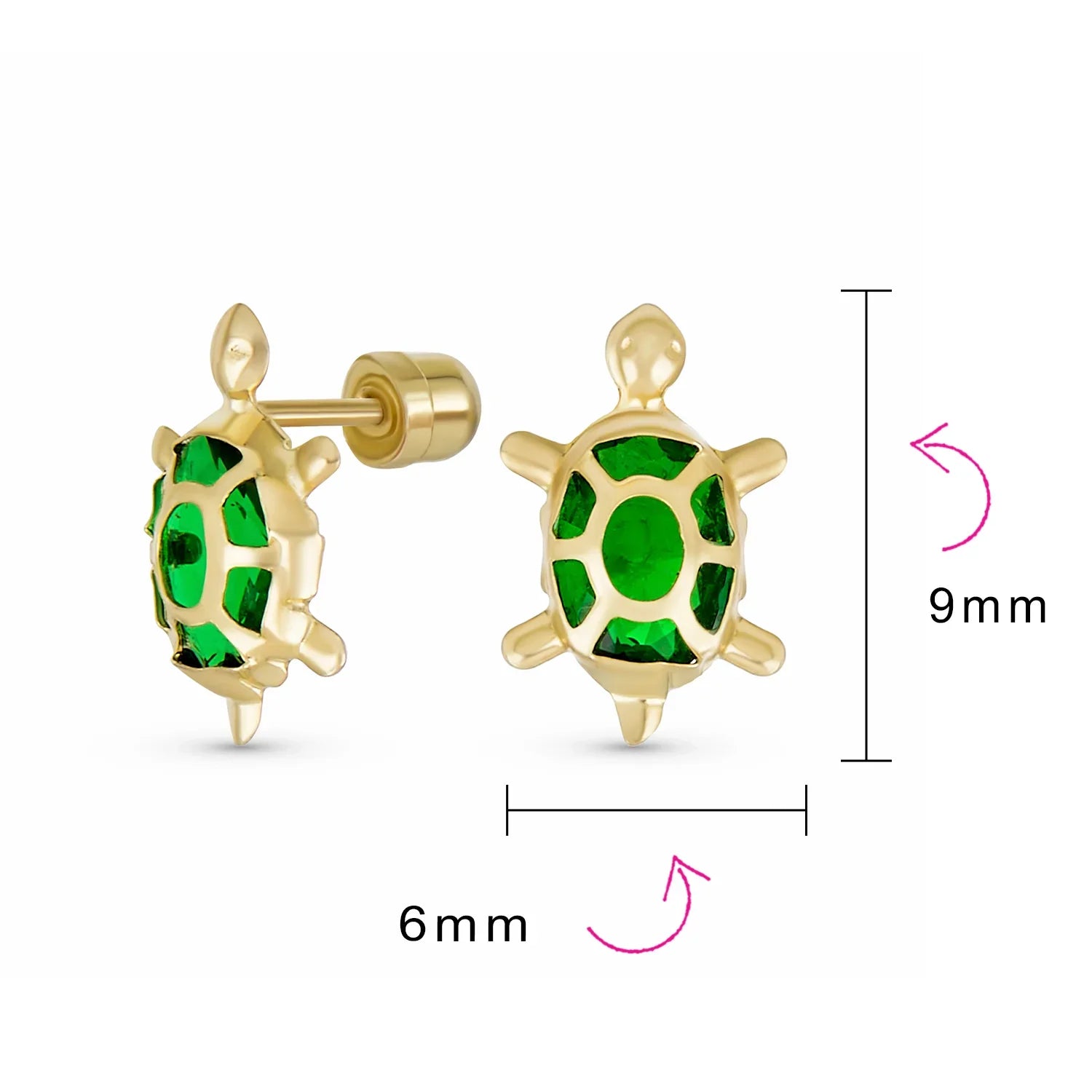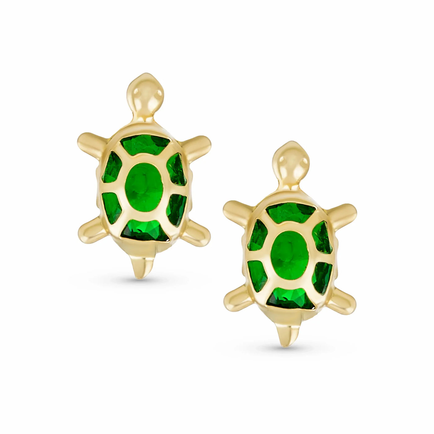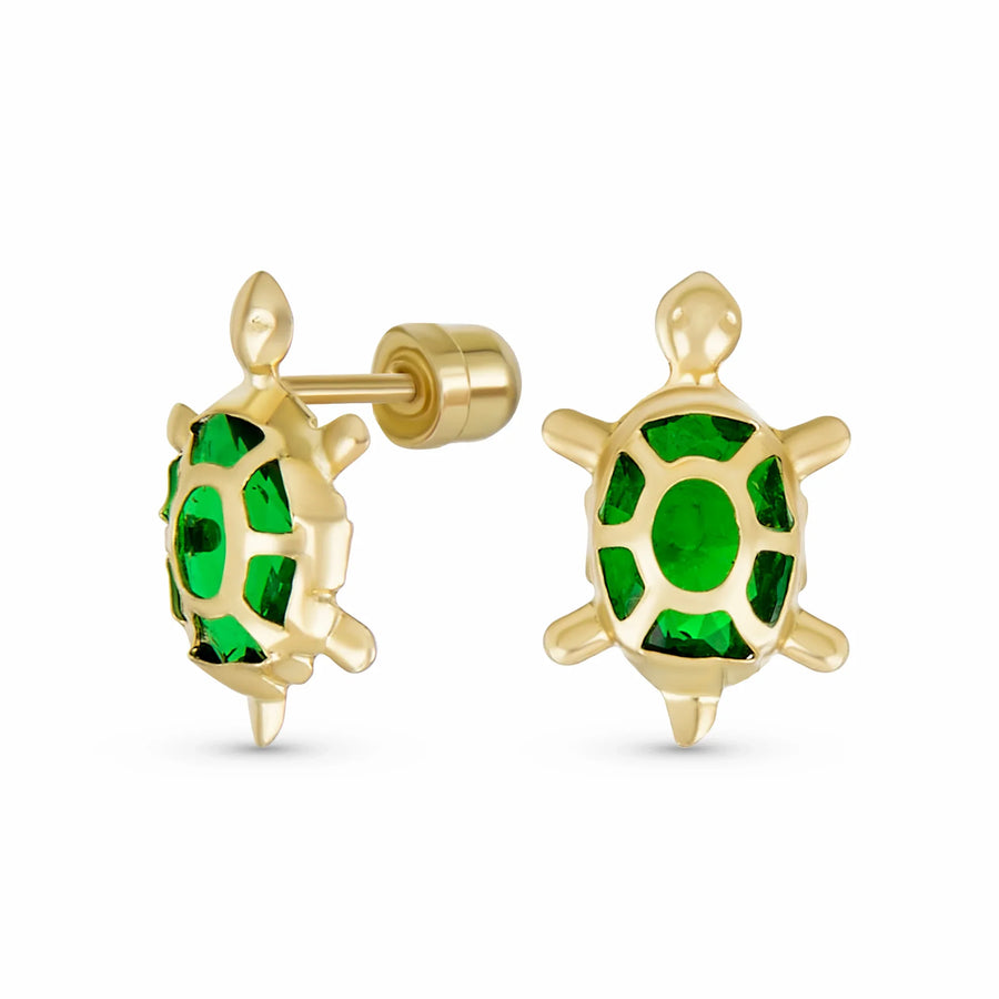 - Add a touch of whimsy to your jewelry collection with these adorable 14K gold screw back stud earrings. Featuring a playful turtle motif and sparkling simulated green emerald czs at the center, these earrings are sure to bring a smile to anyones face.