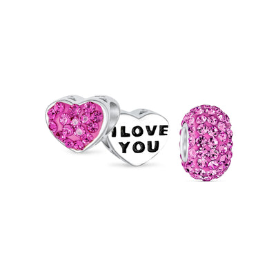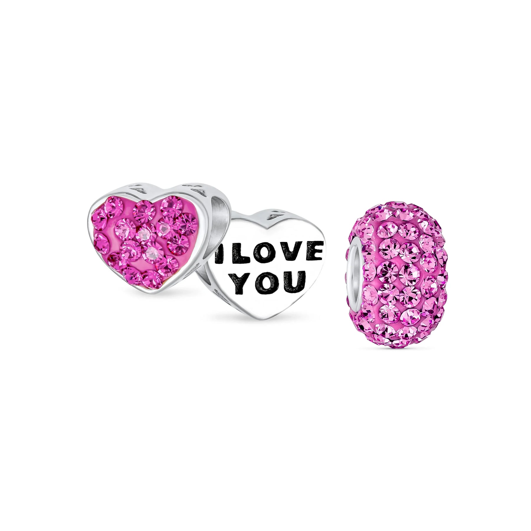 - Our sterling silver pink crystal "I LOVE YOU" charm bead is the perfect Valentine's Day gift for your sweetheart. This romantic message bead sparkles with pink crystals and fits most bead bracelets. Heart jewelry like this pink crystal charm is an ideal way to show her extra love. Surprise her with this pretty pink jewelry soon.