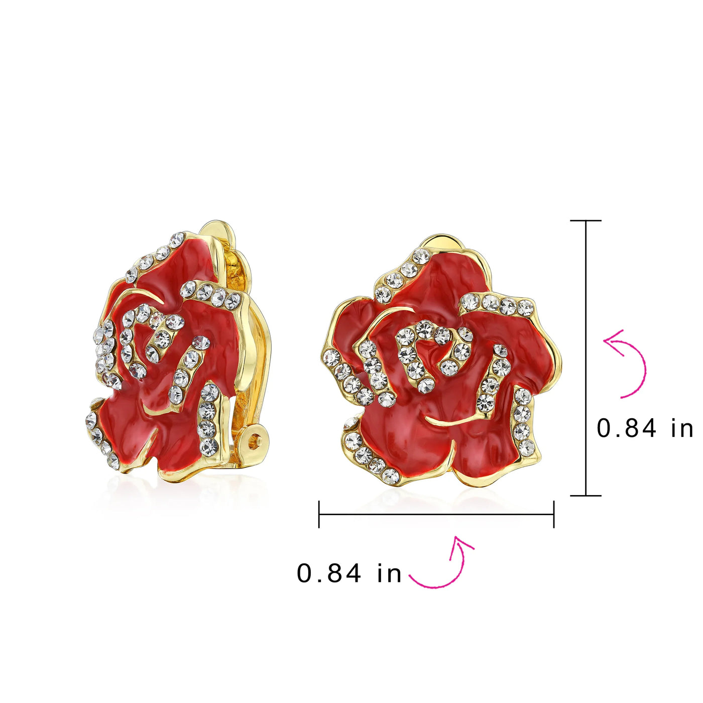 • Experience the beauty of love with these colorful rose earrings that will always be in bloom on your ears. Designed for non-pierced ears, these earrings feature a comfortable padded clip-on closure for a secure and pain-free fit