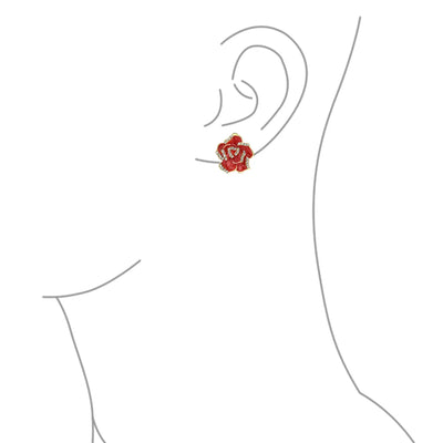 • Enhance your holiday look with vibrant red enamel flower clip-on earrings. Dazzling clear crystals and gold-tone trim add allure. Perfect festive accessories and delightful stocking stuffers.