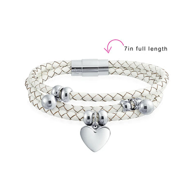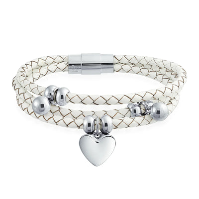 • ELEGANT DESIGN - Elevate your style with this exquisite white leather triple-strand braided bracelet, adorned with three charming heart pendants crafted from silver-tone stainless steel.
