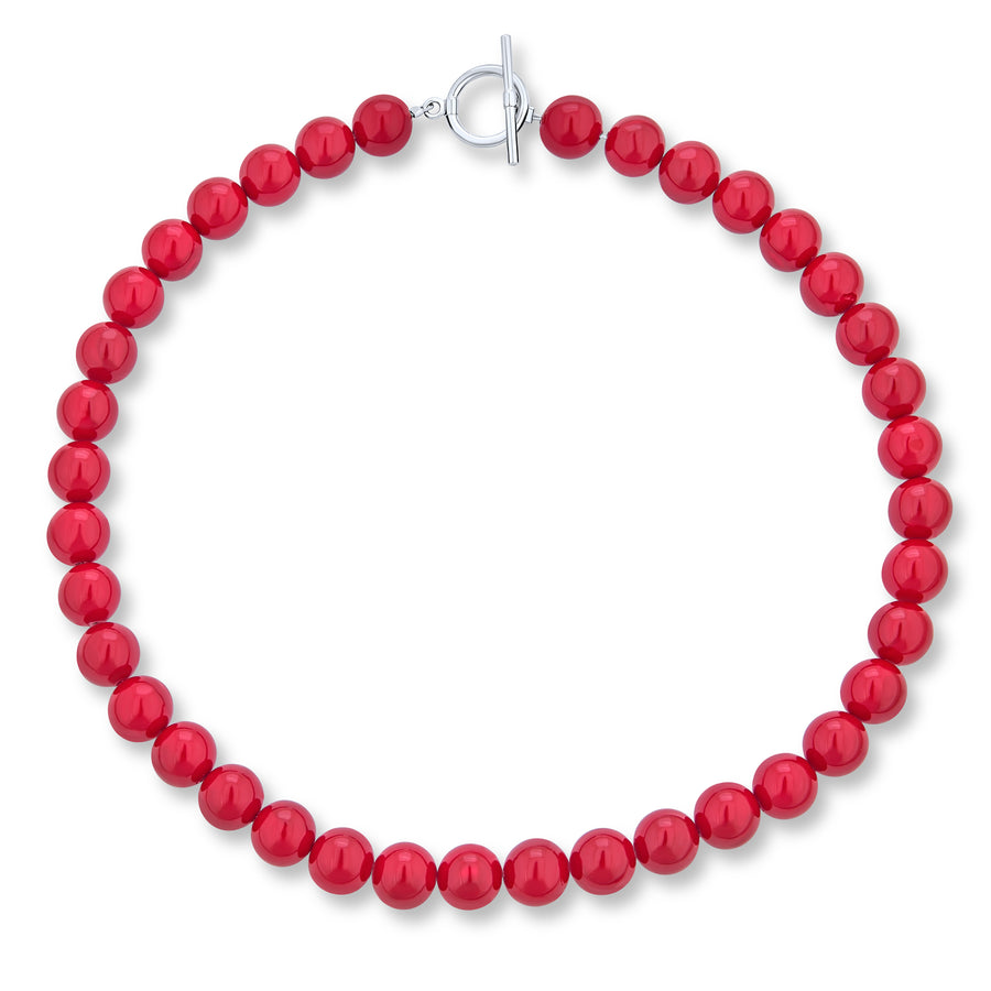 - Fall in love with our newest Red Dyed Calcite bead necklace. The soft pink hues and subtle tonal variations of the 10mm beads make this gemstone necklace stunning. Add sophisticated flair to your look, day or night. Classic bead necklaces are essential in every fashionable woman's trendy accessories collection. Buy our gorgeous and affordable toggle necklace for a friend who loves color. Give her a gift she will adore. Gem jewelry adds an elegant and colorful touch to every outfit.