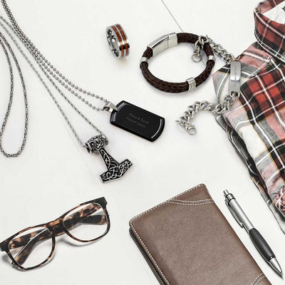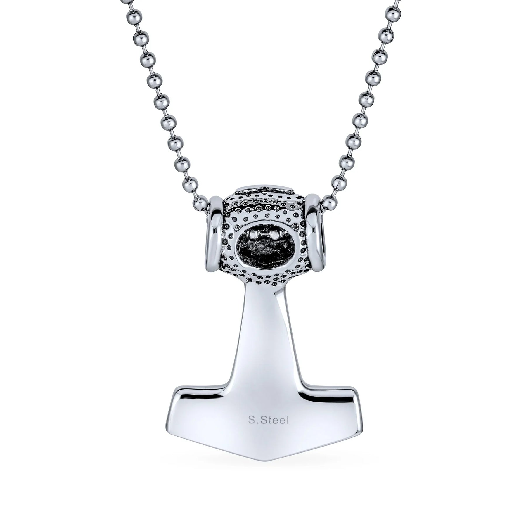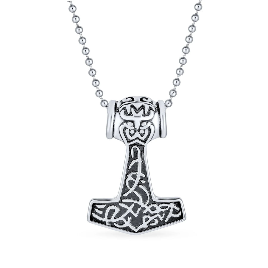 - Medieval legend comes alive in this striking men's pendant necklace. In Norse mythology, Thor wielded the powerful Mjolnir hammer. Today, it symbolizes Viking warriors. Crafted from oxidized stainless steel, this necklace features a Mjolnir hammer motif with a captivating Celtic Knot design. Channel your inner Viking.