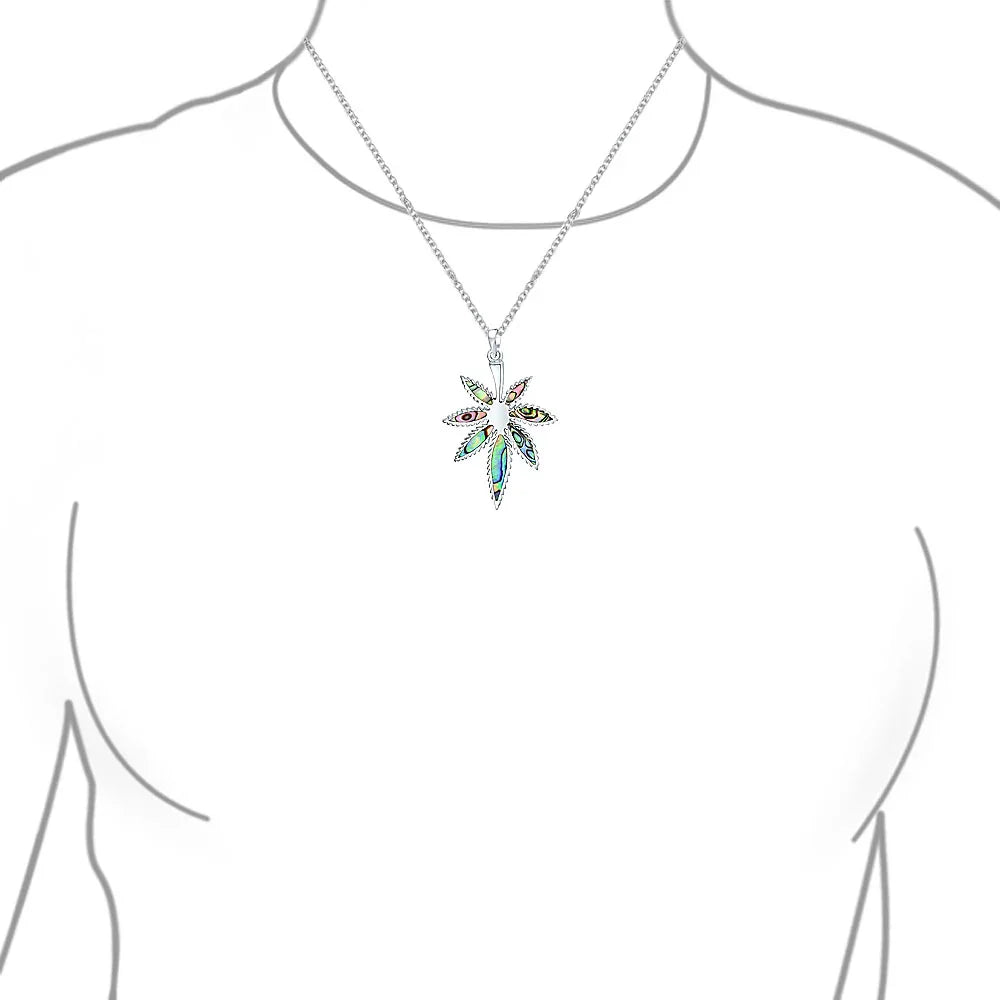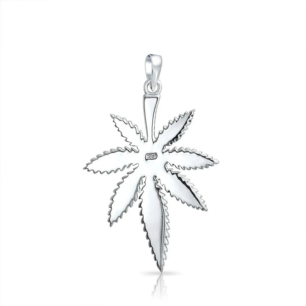 - Our silver pot leaf necklace, crafted from .925 Sterling Silver, is an irresistible piece of jewelry. The distinct marijuana cannabis leaf design adds flair to any look. Featuring vivid abalone shell details, this .925 Sterling Silver pendant is sure to grab attention. Note: Natural shells vary in color and appearance.