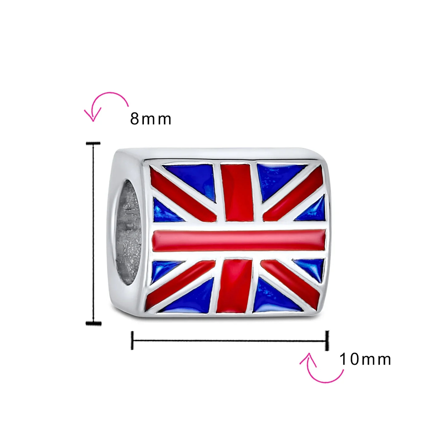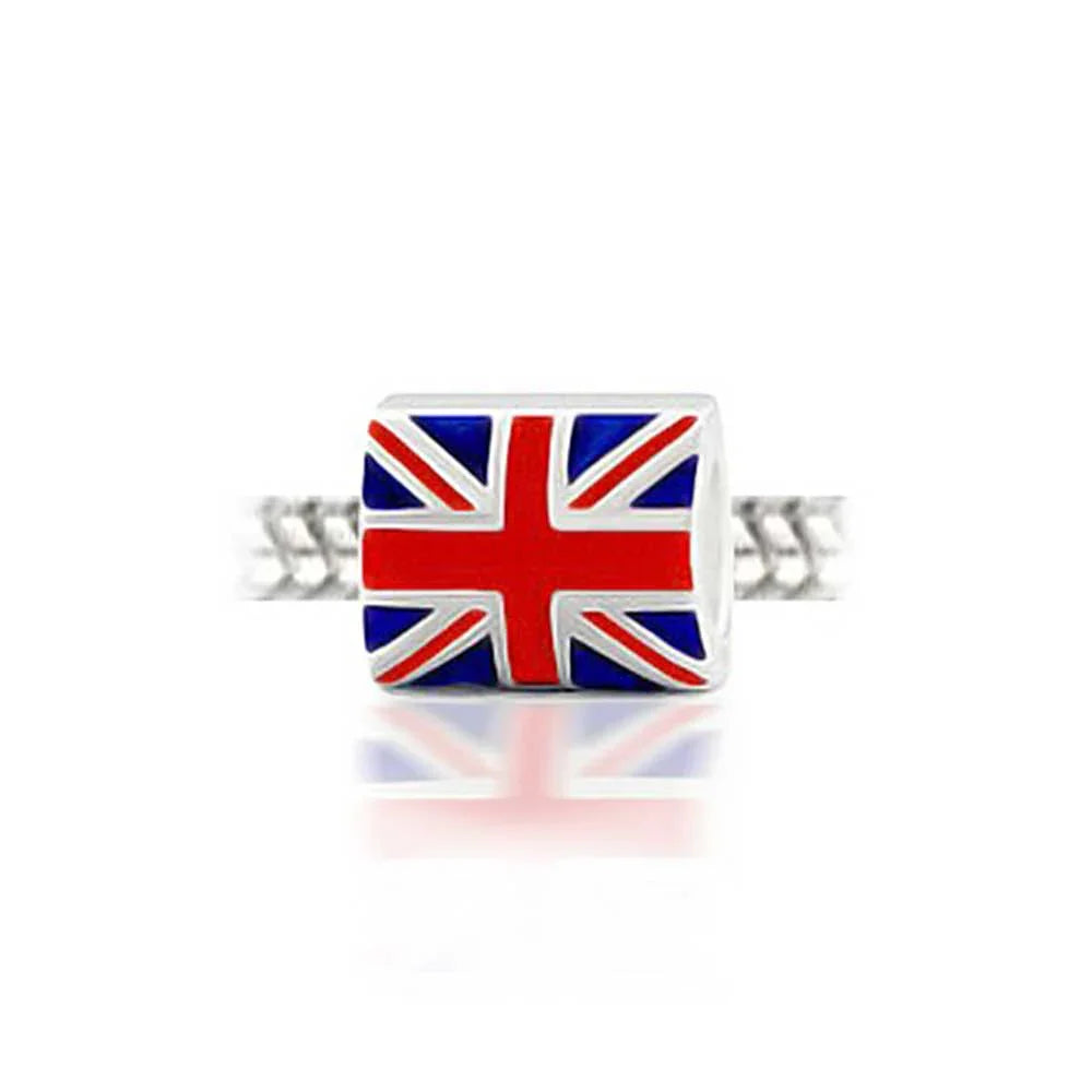 - Referred to as Union Jack, this bead is a great addition to your European story. Can be used to commemorate any British holiday. Individual handmade and unique 925 Sterling Silver British Flag Charm, slight differences in pattern and color.