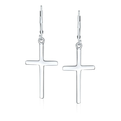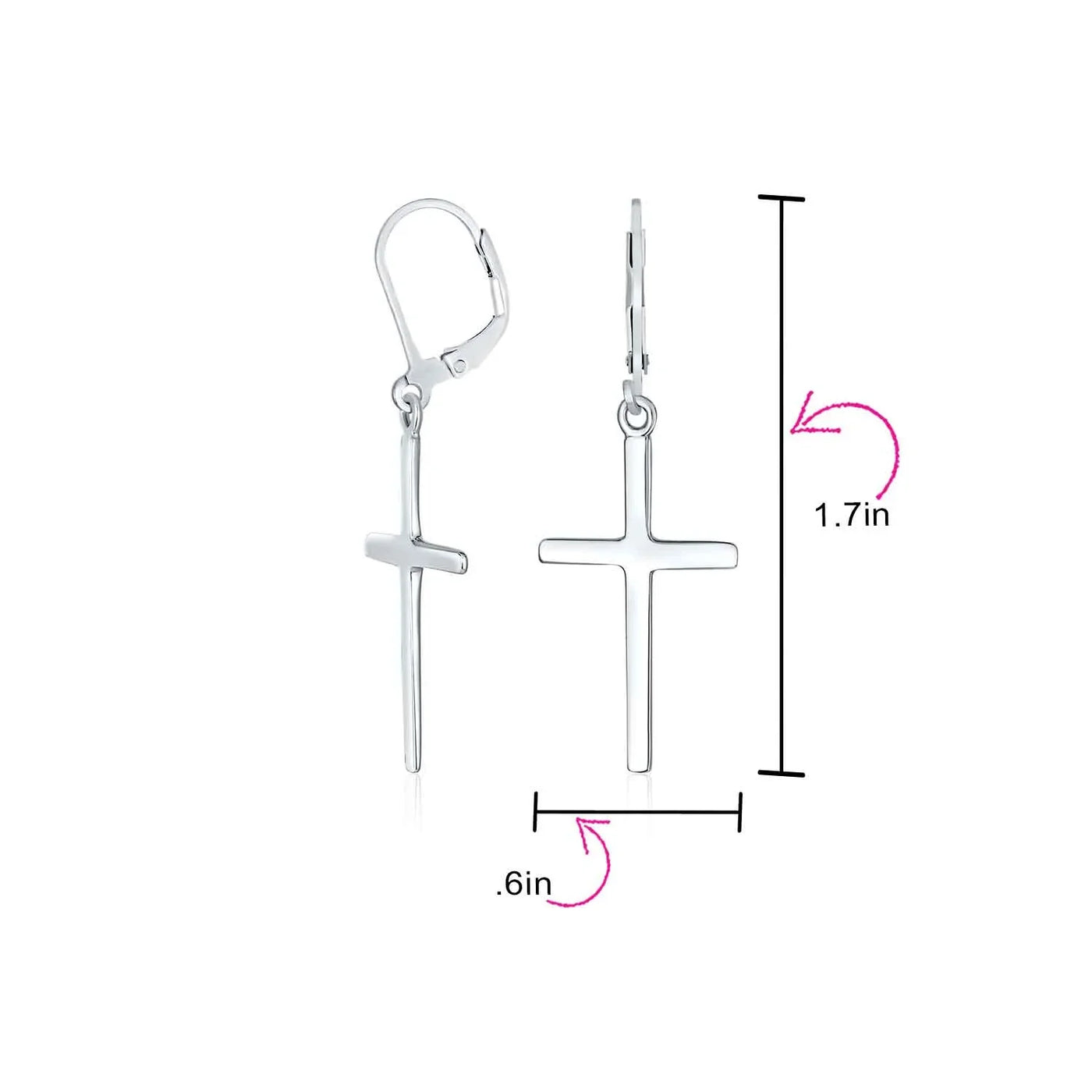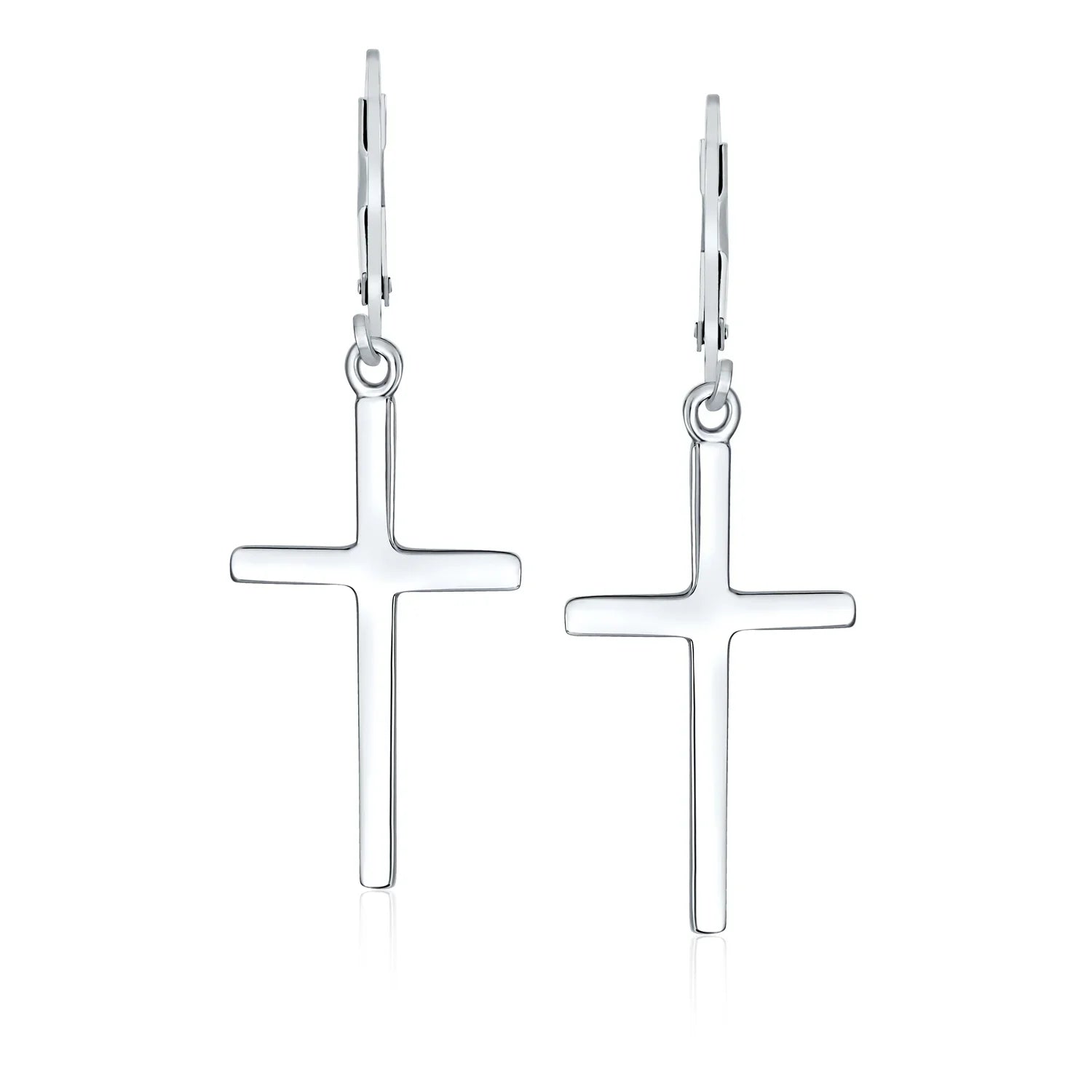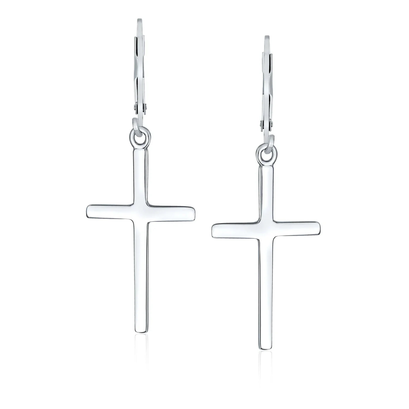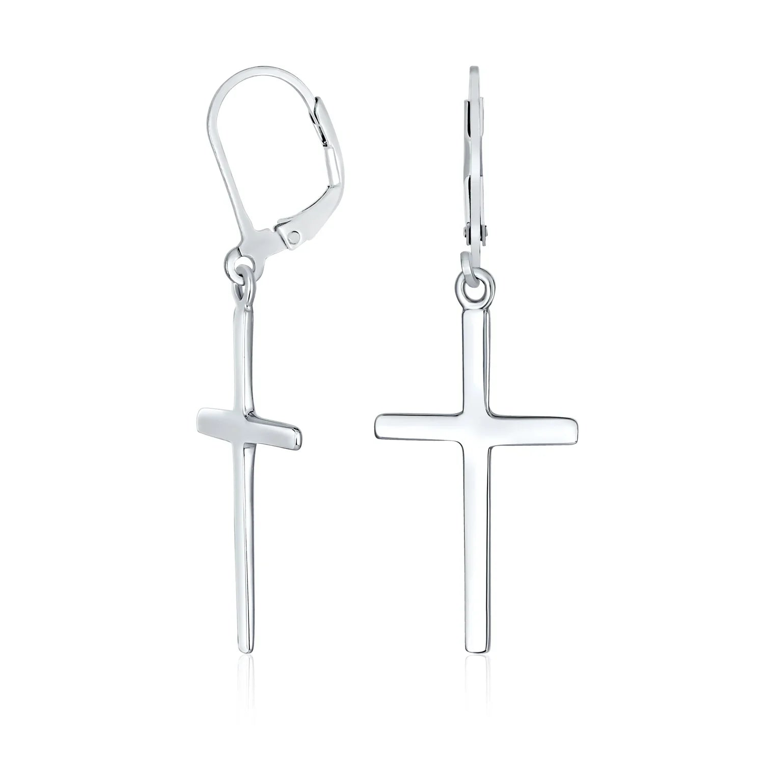 - Showcase your faith with these stunning dangle lever back earrings. Featuring a religious cross motif, they offer a spiritual and fashionable look. Crafted from high-quality .925 silver, they ensure a lustrous, long-lasting shine. Perfect for any occasion, these earrings blend contemporary design with timeless religious symbolism. Elevate your accessory game with these exquisite, faith-inspired earrings.