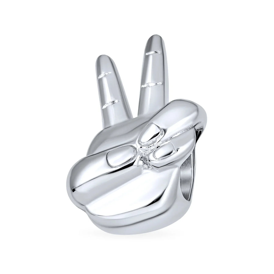 - Wear this cool peace sign charm bead for a touch of tranquility. Show your love for peace on earth with this .925 sterling silver bead. The bead features two fingers holding up the peace sign, just like in your favorite photos. Pair it with other unique charm beads for a trendy, meaningful fashion statement. Enjoy this peace bead and let everyone know your values.