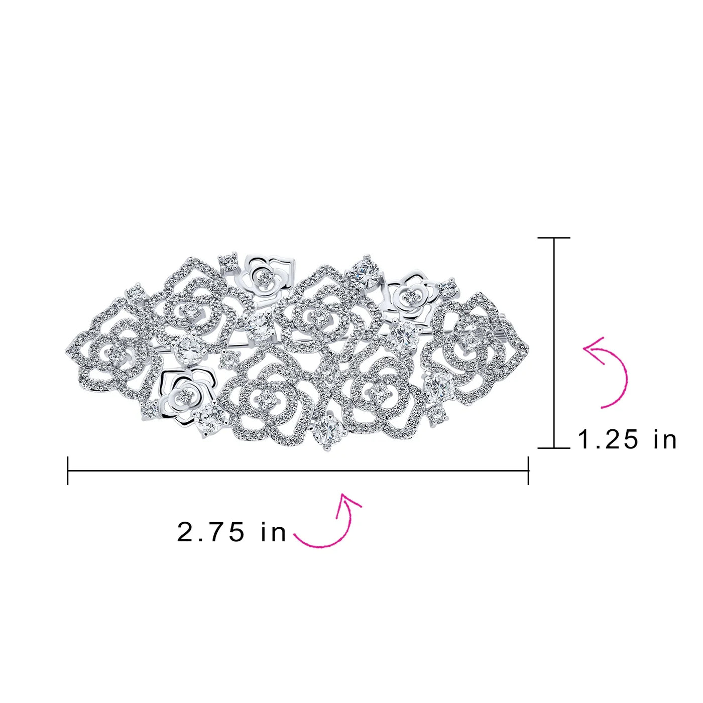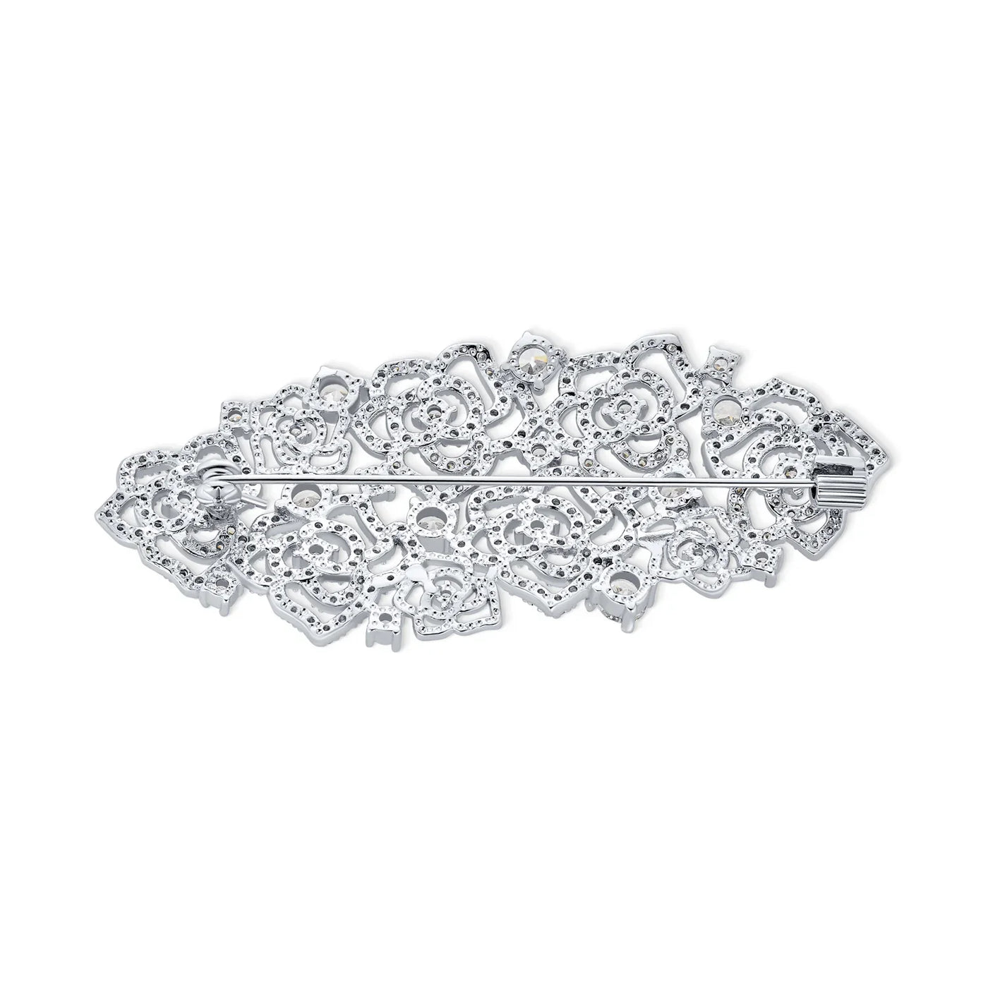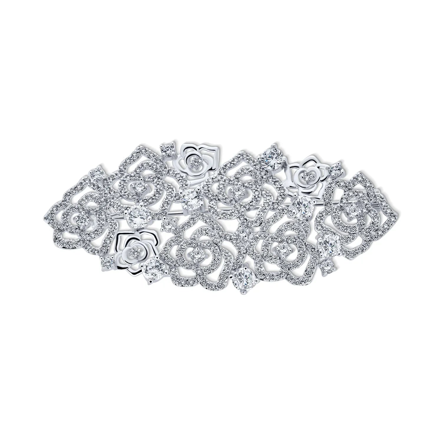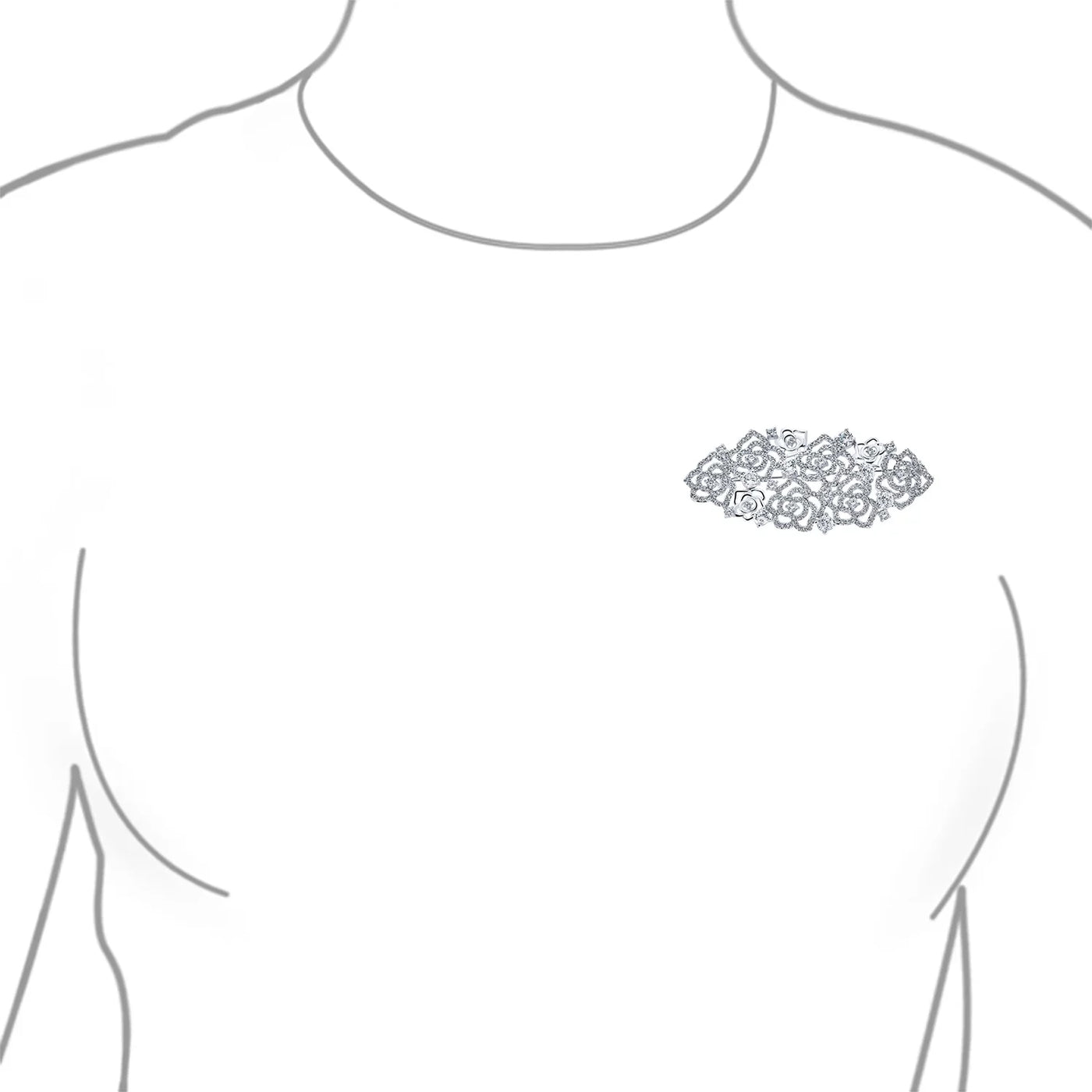 Romantic Art Deco Crystal Floral Roses Scarf Brooche Pin Silver Plated Brass - Bling Jewelry