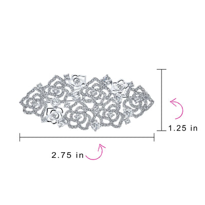 Romantic Art Deco Crystal Floral Roses Scarf Brooche Pin