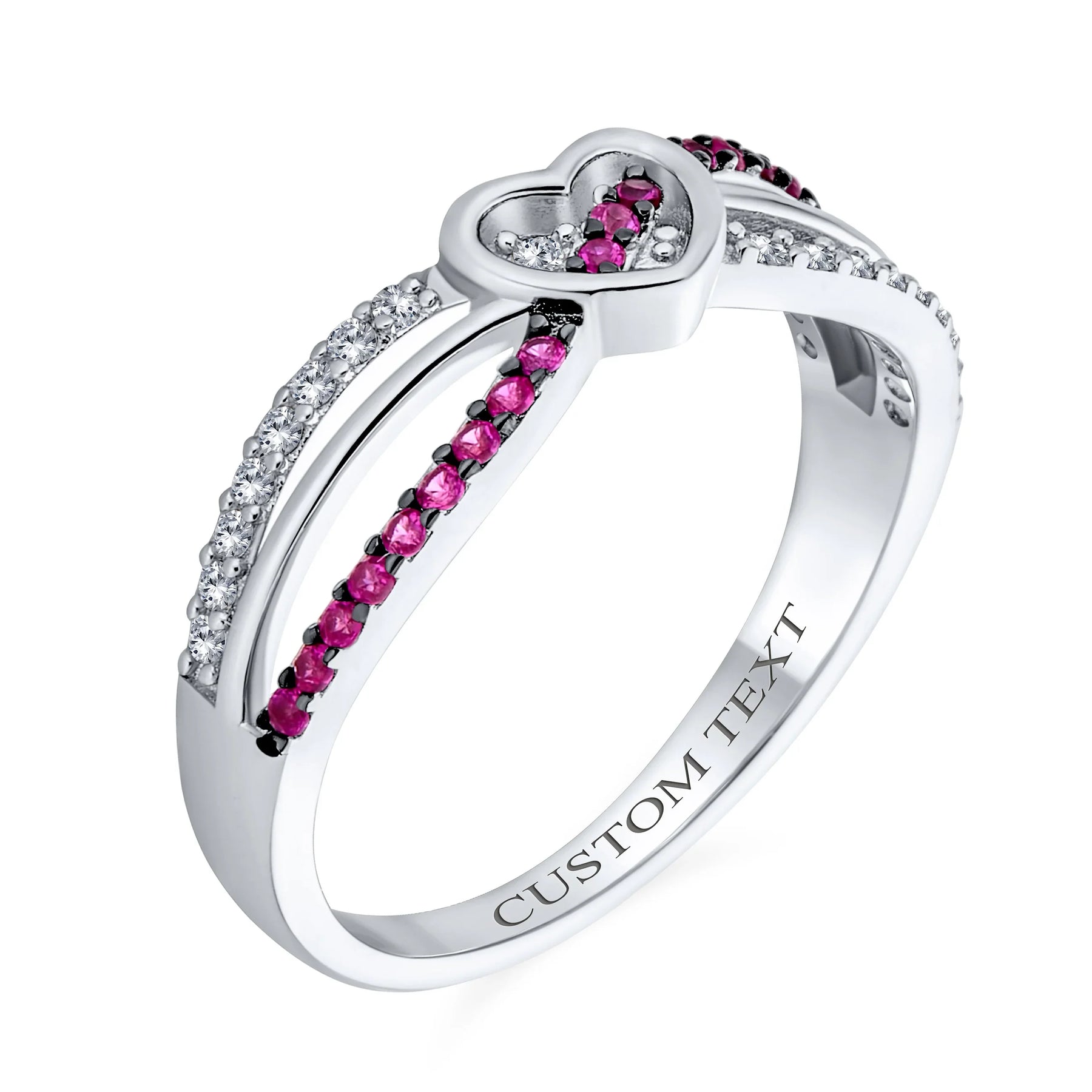 Romantic CZ Accent Cocktail Statement Ring Pink Heart and Sterling Silver Bands