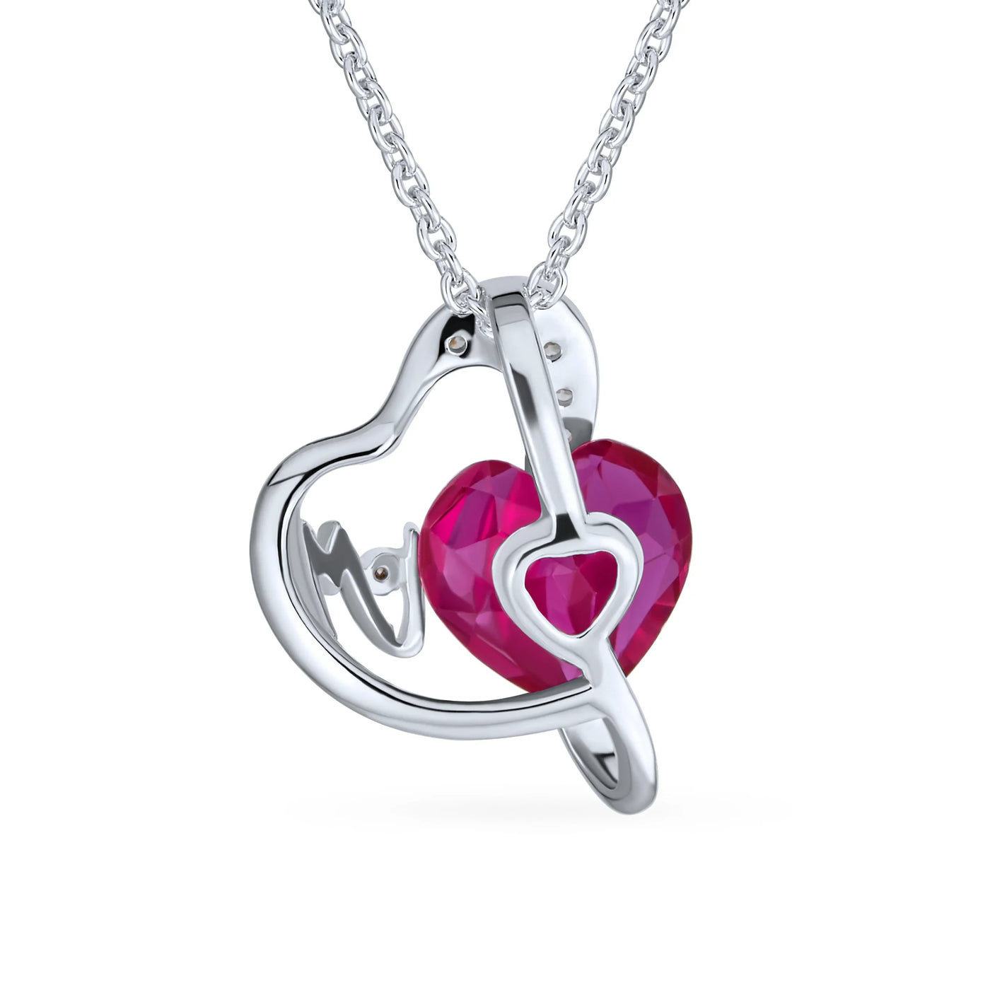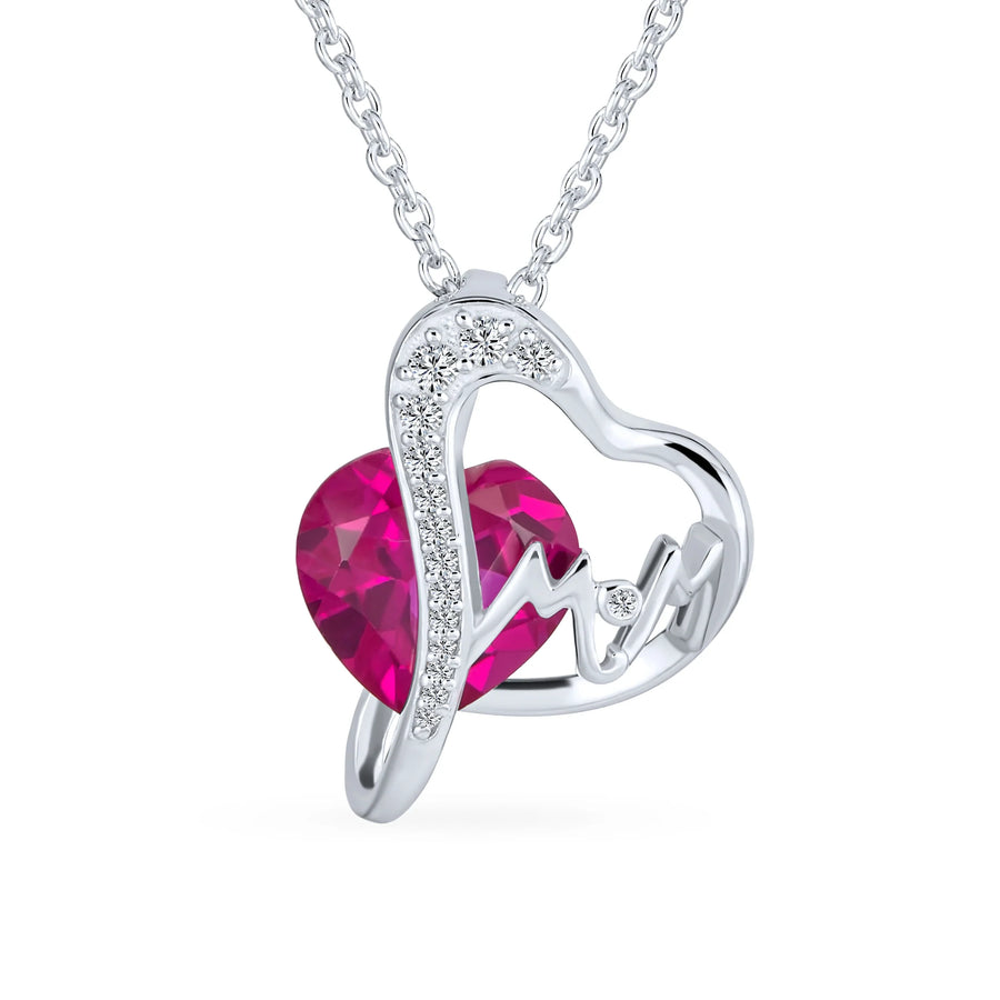 - This stunning, affordable pink necklace is an elegant birthstone jewelry piece fit for a queen. Featuring breathtaking simulated ruby hearts, it dazzles with pave CZ and a big red heart. Rhodium plating ensures tarnish resistance. Feel like a sparkling princess with this crystal necklace. Perfect for bridal parties and July birthdays, or as a holiday gift.