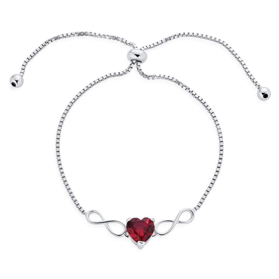 - Add love to your wrist with this elegant adjustable Bolo Bracelet. Crafted in sleek .925 sterling silver, it features a solitaire red heart between two silver Infinity symbols. This secure pull-string bracelet adjusts to fit any wrist. Its modern classic style suits any occasion, day or night. Perfect for women, this bracelet complements any attire.