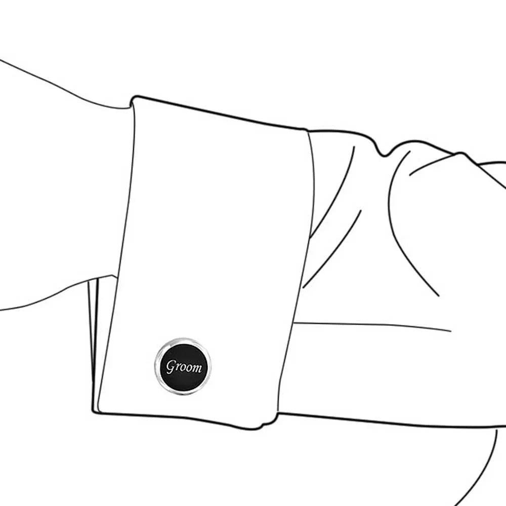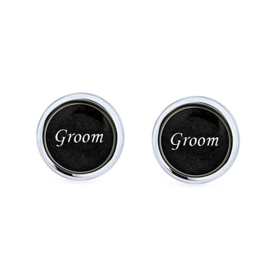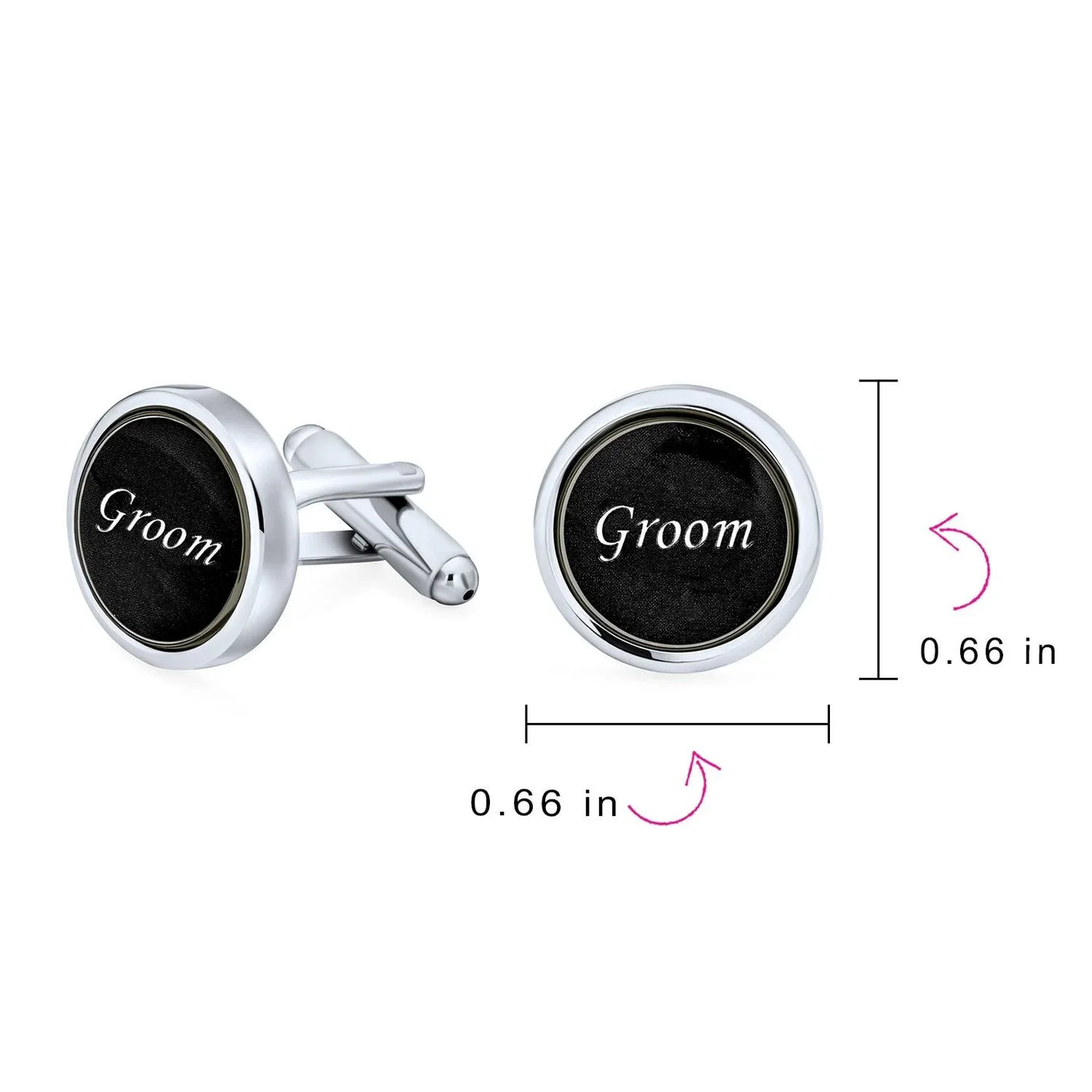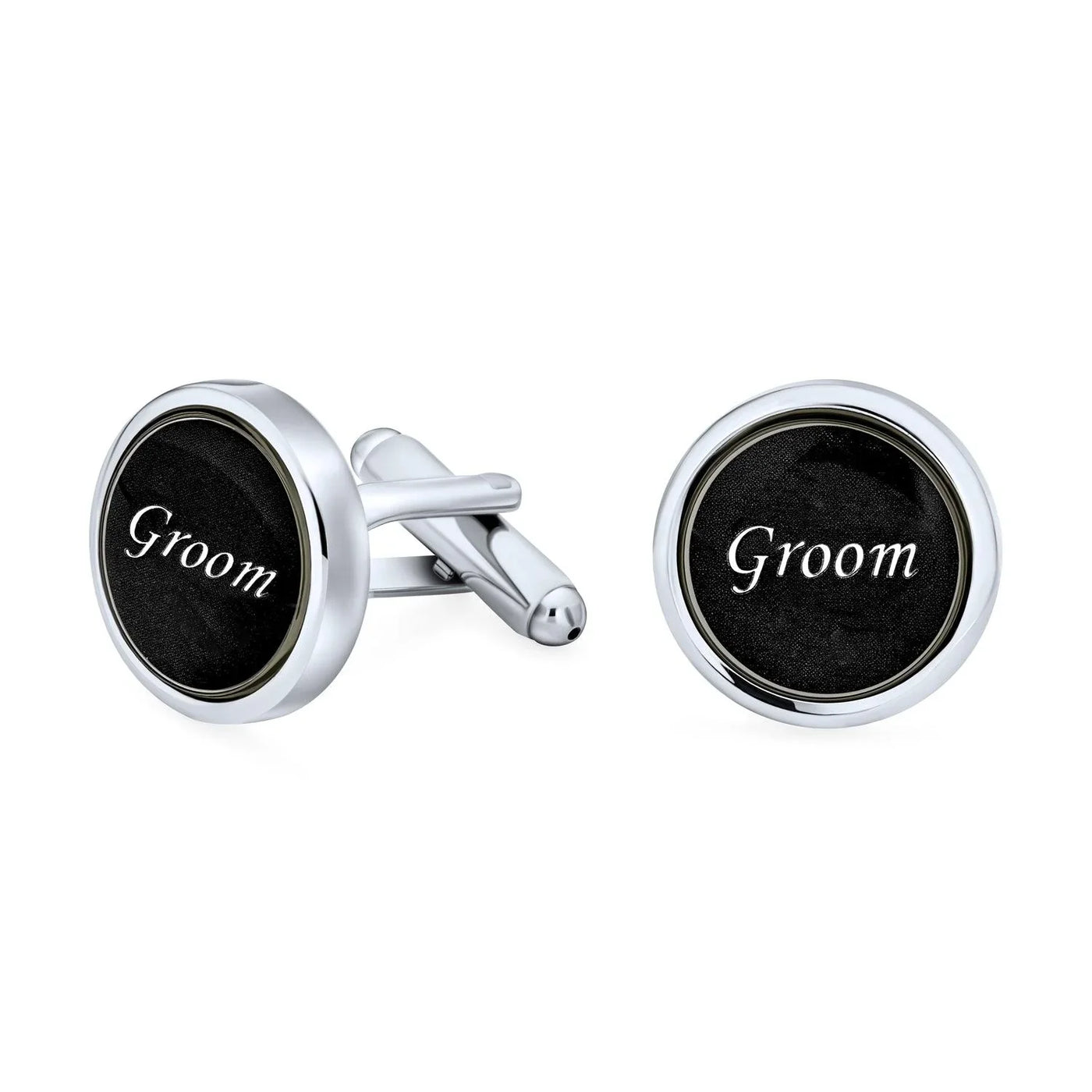 - As the Best Man, your first task is to get these stunning best man cufflinks. Rhodium-plated brass encases black enamel with white wedding font spelling "Best Man." Flaunt your pride with these exquisite men's cufflinks. Material: Brass, Rhodium Plating, Enamel. Measure: 0.66 inch L X 0.66 inch W. Weight: 16.4 grams.