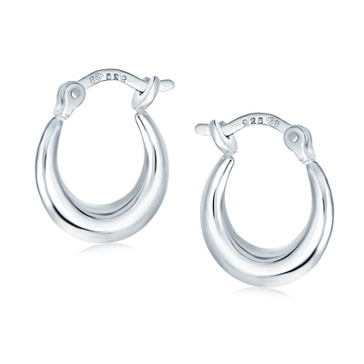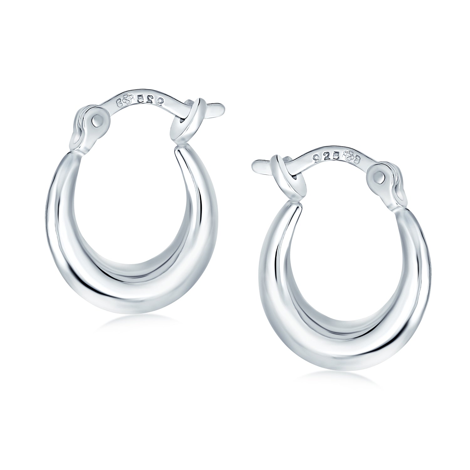Round Crescent Tapered Tube Hoop Earrings Sterling Silver Hinged Notched Post