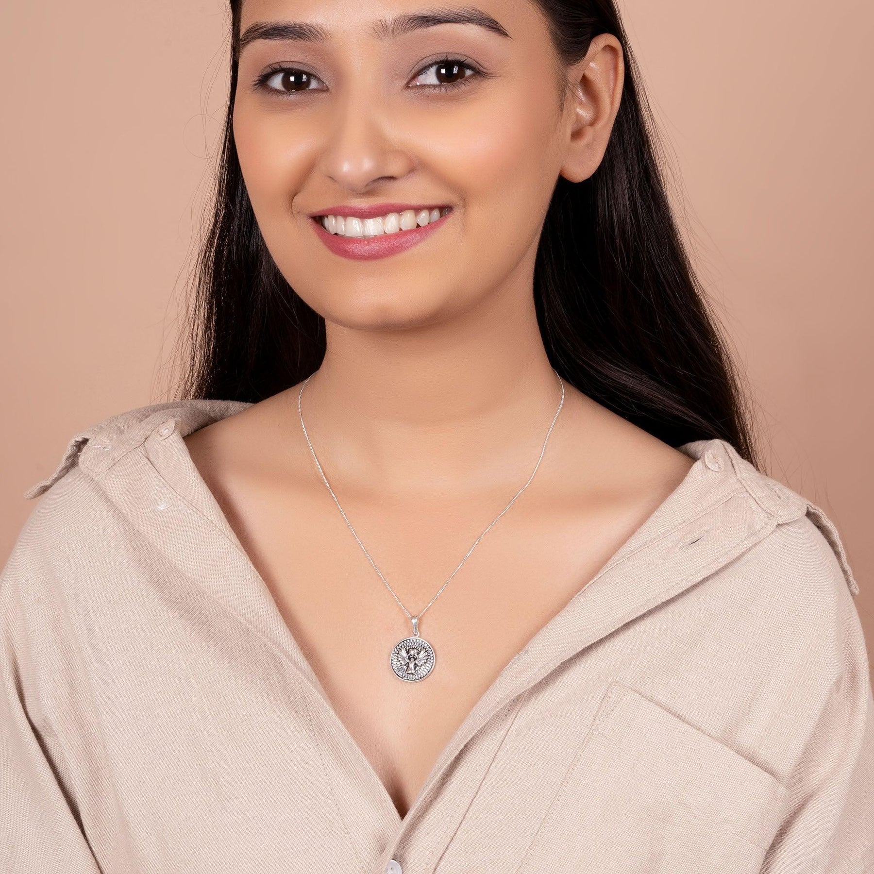 - Delight a cherished angel in your life with this captivating .925 silver circle pendant necklace, showcasing a heavenly guardian angel design. A refined and delicate accessory with heartfelt sentiment.
