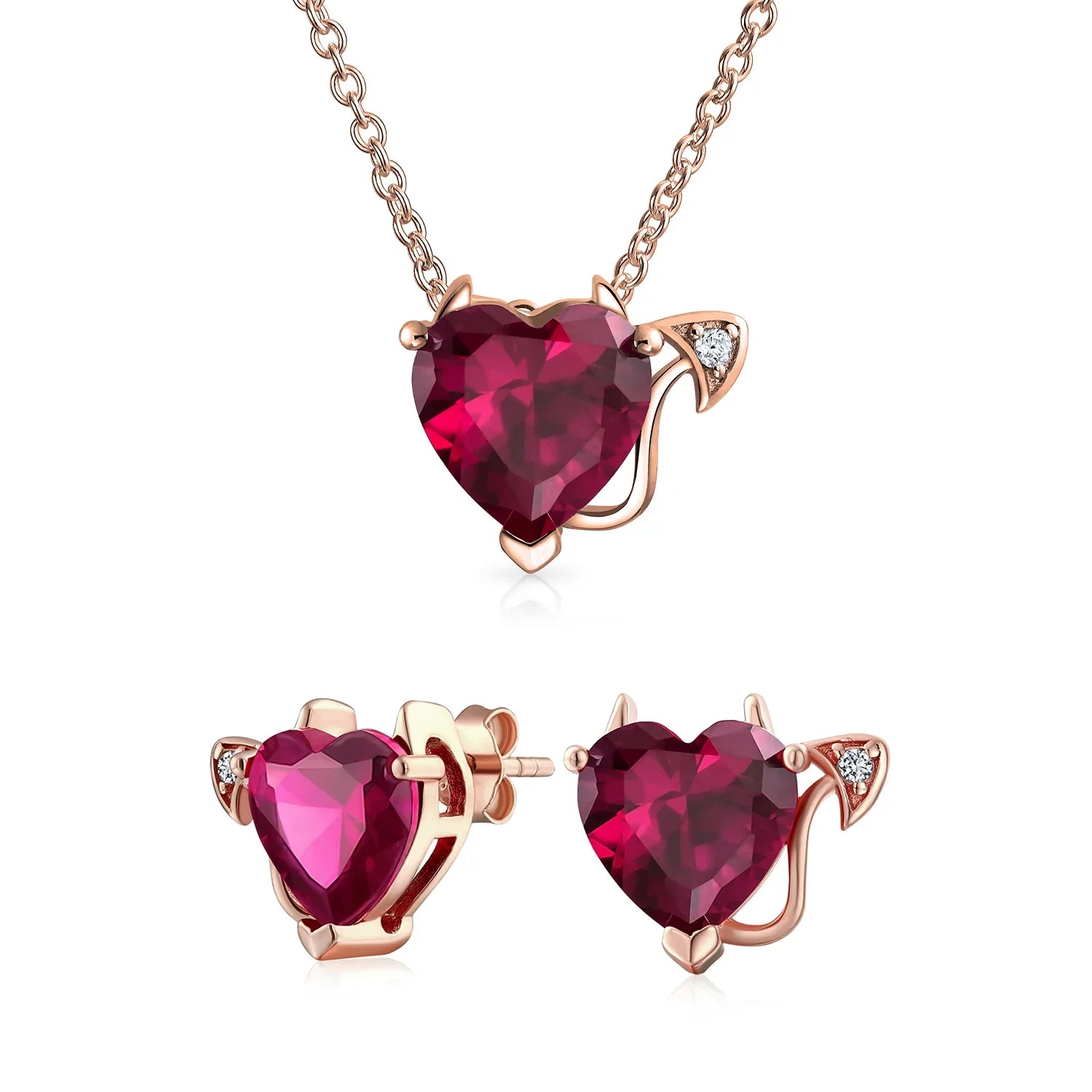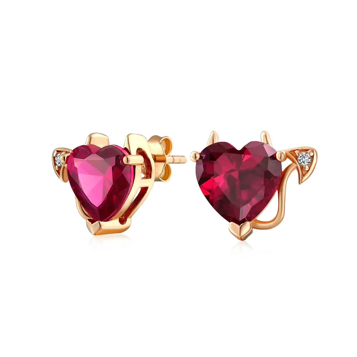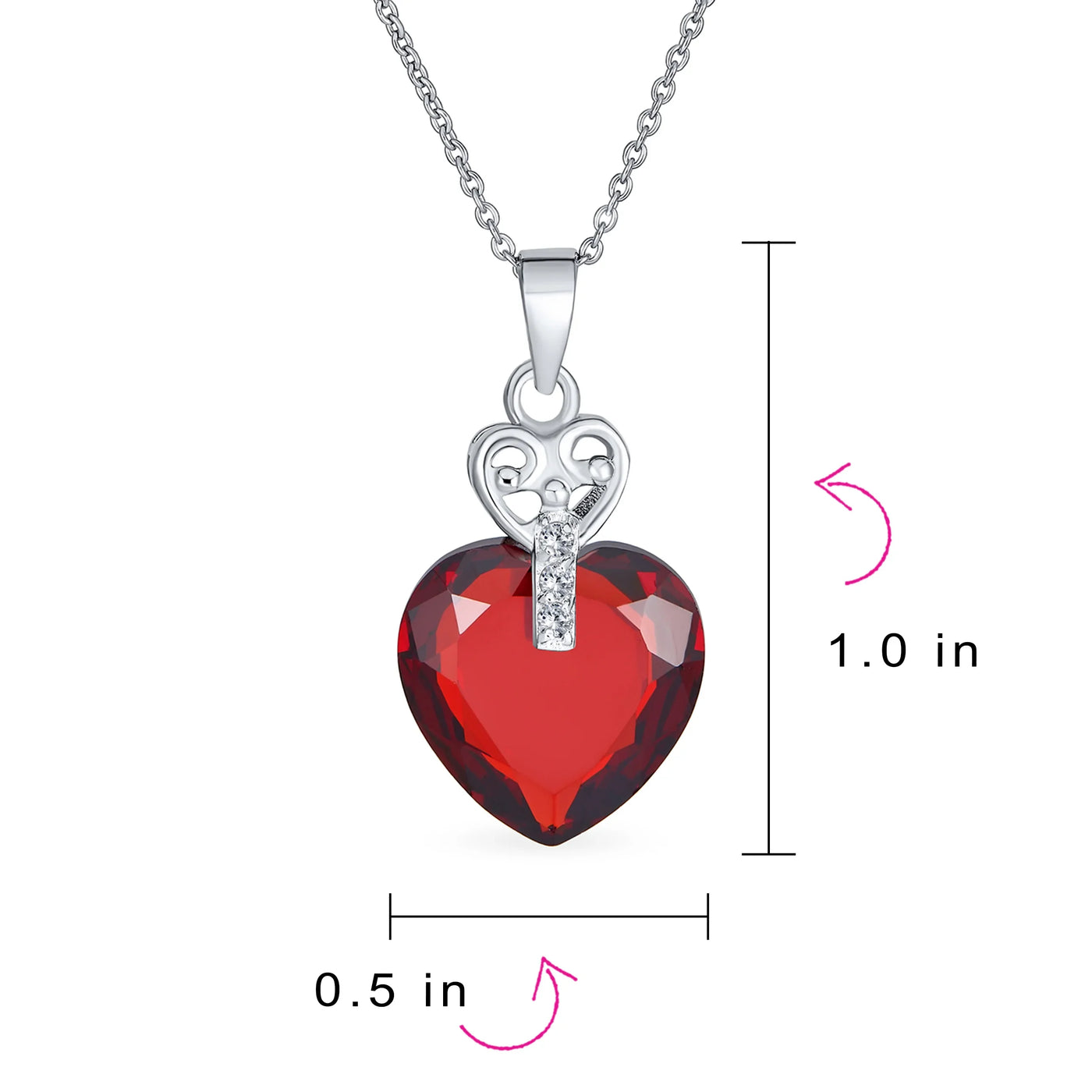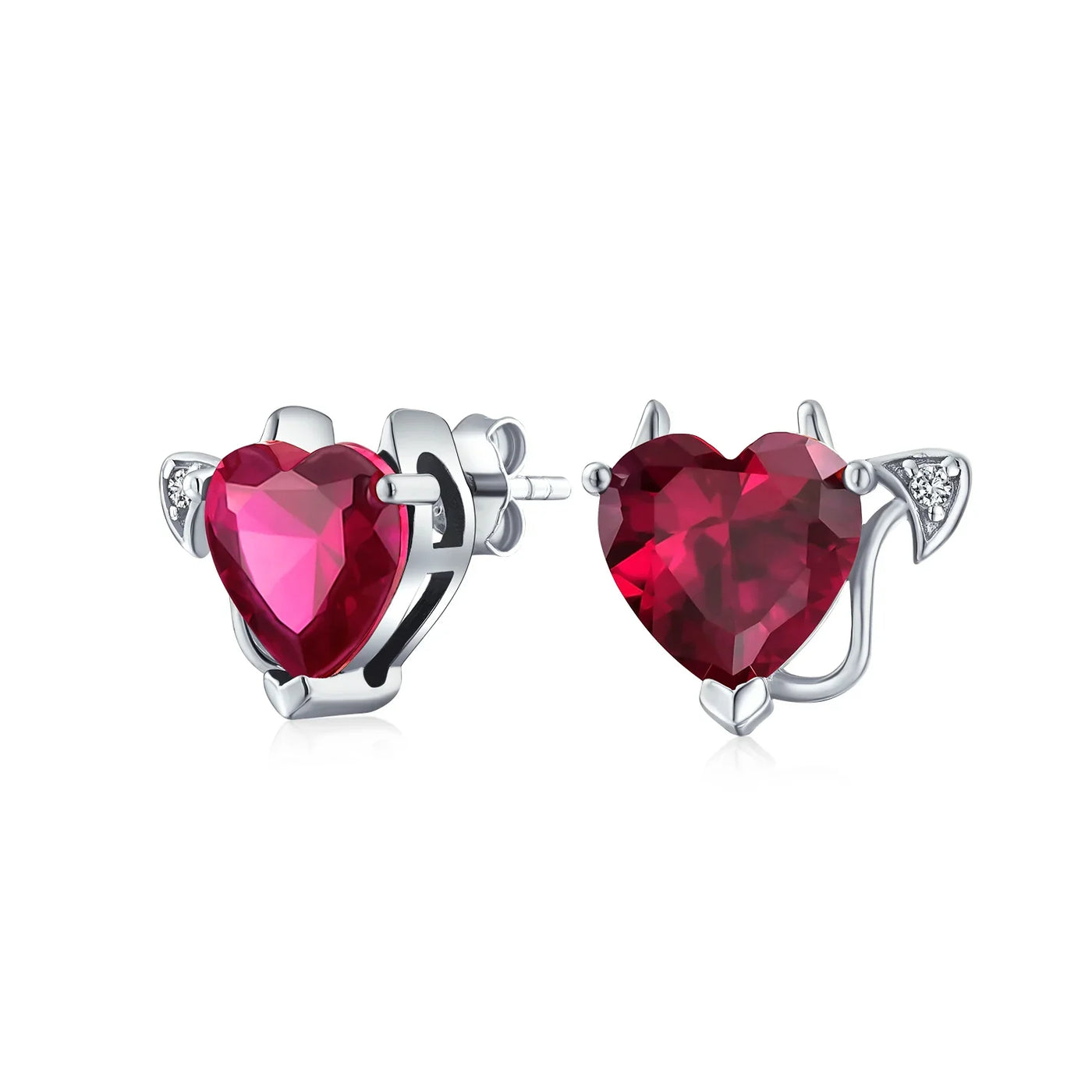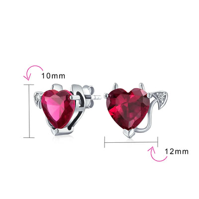 - Lusciously feminine, any lady will glow with joy with these charming sterling silver dangle pink red heart shaped earrings upon her ears. A delicately, glowing simulated ruby cz heart dangles from a shimmering, cz accented huggie hoop. Stunning option for July birthday.