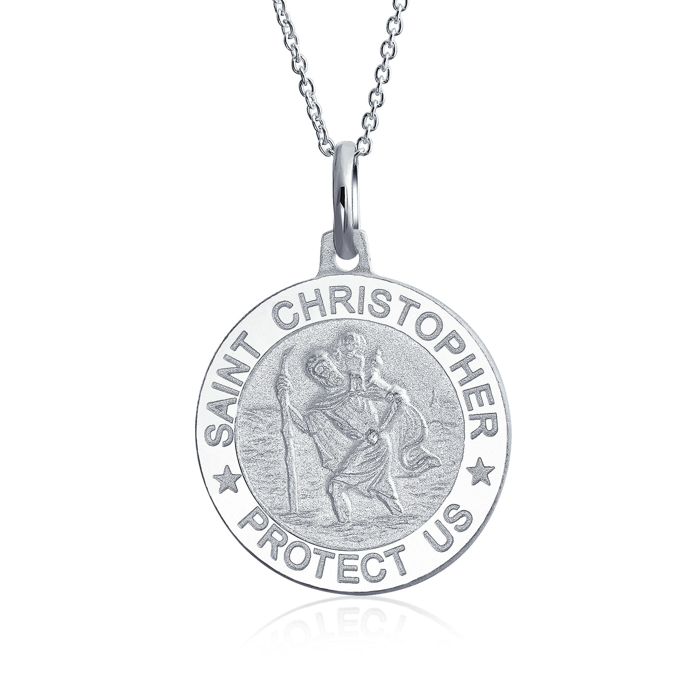 - Discover our exquisite Saint Christopher medal pendant, crafted from premium .925 Sterling Silver. This stunning piece features a captivating design of the revered saint fording a river with Jesus. Ideal for frequent travelers seeking divine protection, this pendant is a beloved safeguarding charm. Its timeless appeal makes it a perfect gift for birthdays, holidays, or special occasions. Elevate your style and embrace the profound significance of St. Christopher jewelry. Experience the enduring popularity and heartfelt sentiment of this remarkable piece. Crafted with precision, this pendant is a true masterpiece.