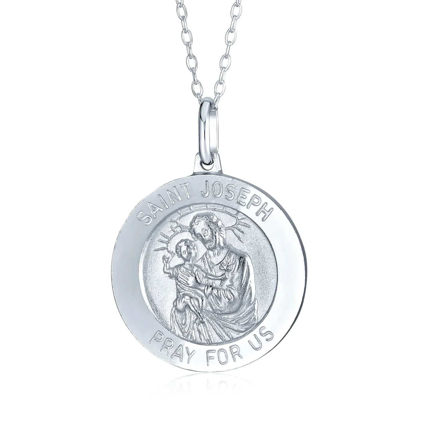 Saint Joseph Religious Medal Pendant Necklace for Men - Sterling Silver - Bling Jewelry