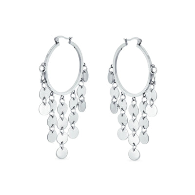 Boho Sequin Coin Disc Dangle Round Hoop Chandelier Earrings