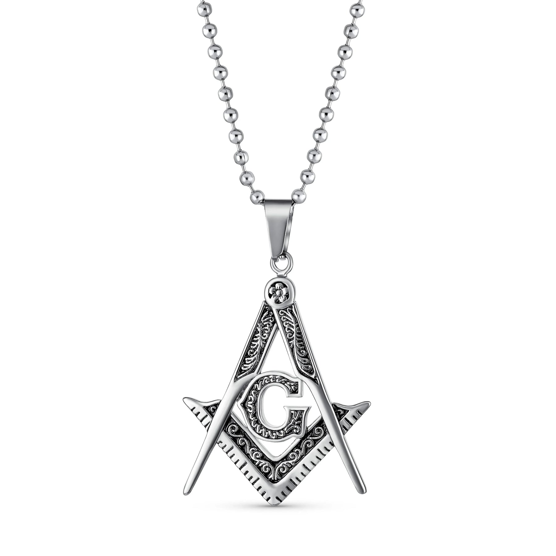 - Freemasons have taken pride in their work for centuries, and we took pride in creating this sleek freemason pendant for you. Our Stainless Steel jewelry features a detailed pendant with the traditional compass, rule, and letter G. It hangs from a 20-inch rolo style chain. This versatile freemason jewelry can be worn with casual clothes. Wear it at your local lodge or give it as a birthday or holiday gift to your freemason brothers. Every good mason needs our freemason necklace.