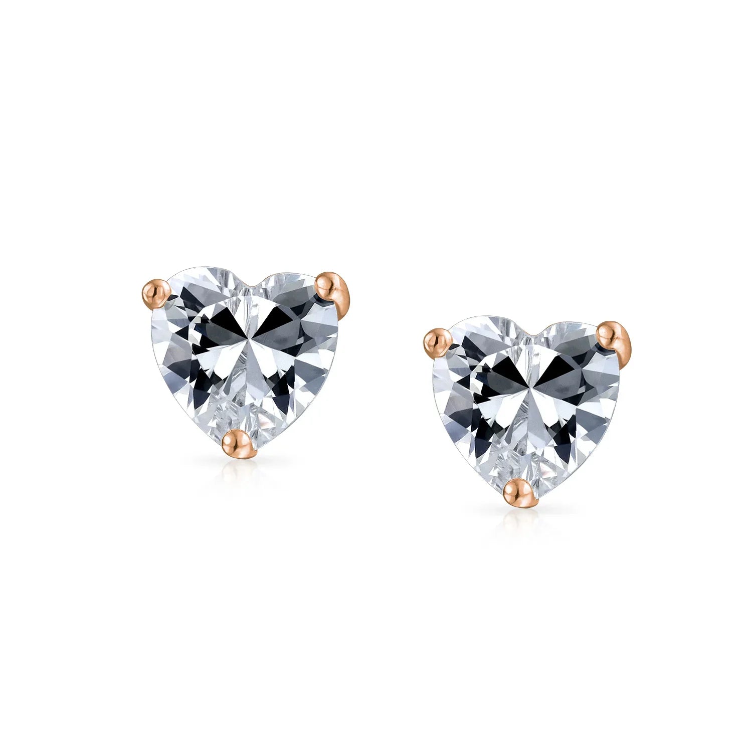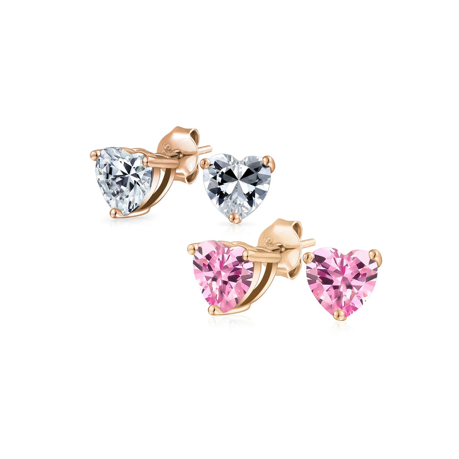 - Rose gold and pink, violets are blue, these heart-shaped CZ stud earrings are perfect for you. Ideal for pierced ears, they add a subtle chic touch to any outfit.