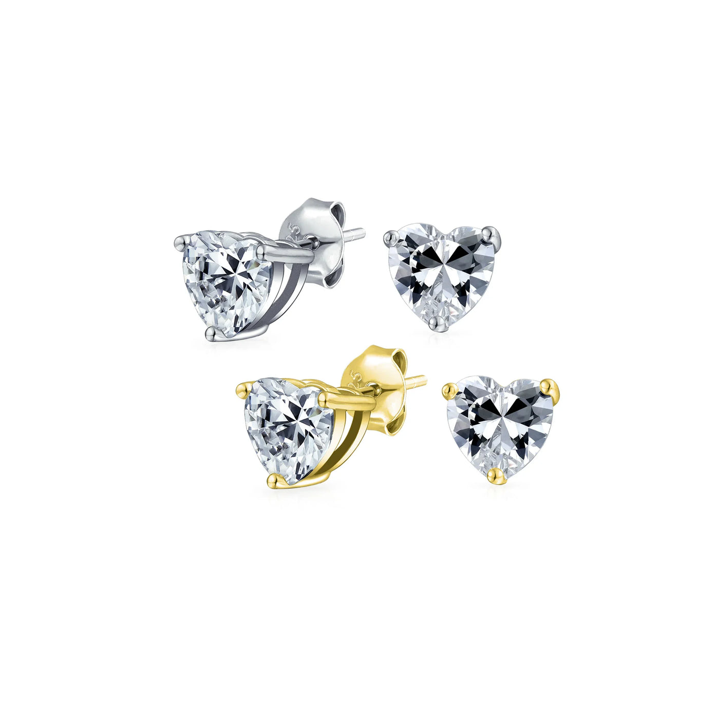 - These heart CZ stud earrings are crafted from 925 sterling silver and gold plated. Their simple design is genius. Perfect for friends, these heart studs are a sweetheart accessory. Pair them with any outfit to stand out. The heart-shaped stones in a 3-prong setting sparkle beautifully. FOR PIERCED EARS ONLY.