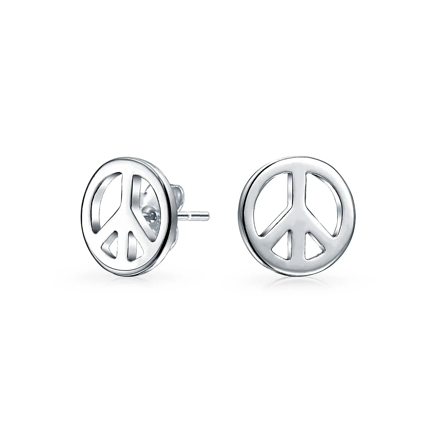 - Showcase your style with our mini groovy retro peace sign earrings or pendant, designed to shine and symbolize peace. This iconic symbol, over 50 years old, is globally recognized and crafted to resemble an olive branch. Ideal for pierced ears.