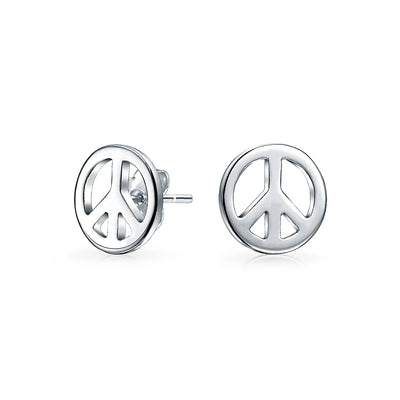 - Discover our charming peace earrings, crafted from premium .925 sterling silver and rhodium plated for lasting shine and tarnish resistance. Embrace peace and style with these elegant peace symbol earrings. Featuring a secure push back closure, they ensure all-day comfort. Let your inner peace radiate with these exquisite earrings.