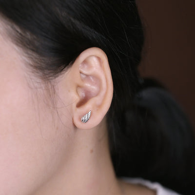 - For Pierced Ears, Post With Friction Back, Measure: Stud - 0.4 Inch L x 0.2 Inch W, Stud with Chain - 2 Inch chain, 0.60 x 0.60 Inch angel wing, 3 Inch total length, Material: Genuine