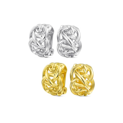 - Express your eternal love with these stunning half hoop brass clip-on earrings, featuring a Celtic love knot design, perfect for non-pierced ears.