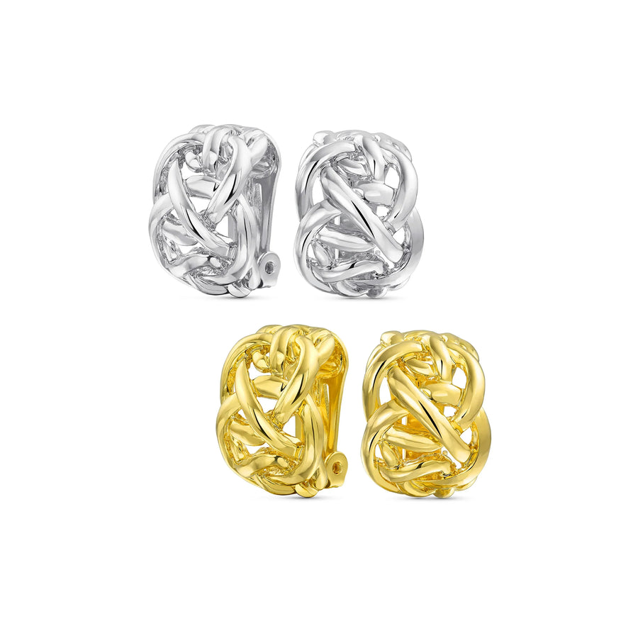 - Enhance your jewelry box with these stunning Celtic knot clip-on earrings. Rhodium plated for a brilliant shine and earthy allure. Lightweight, versatile, and crafted from quality materials. Perfect for an on-the-go lifestyle.