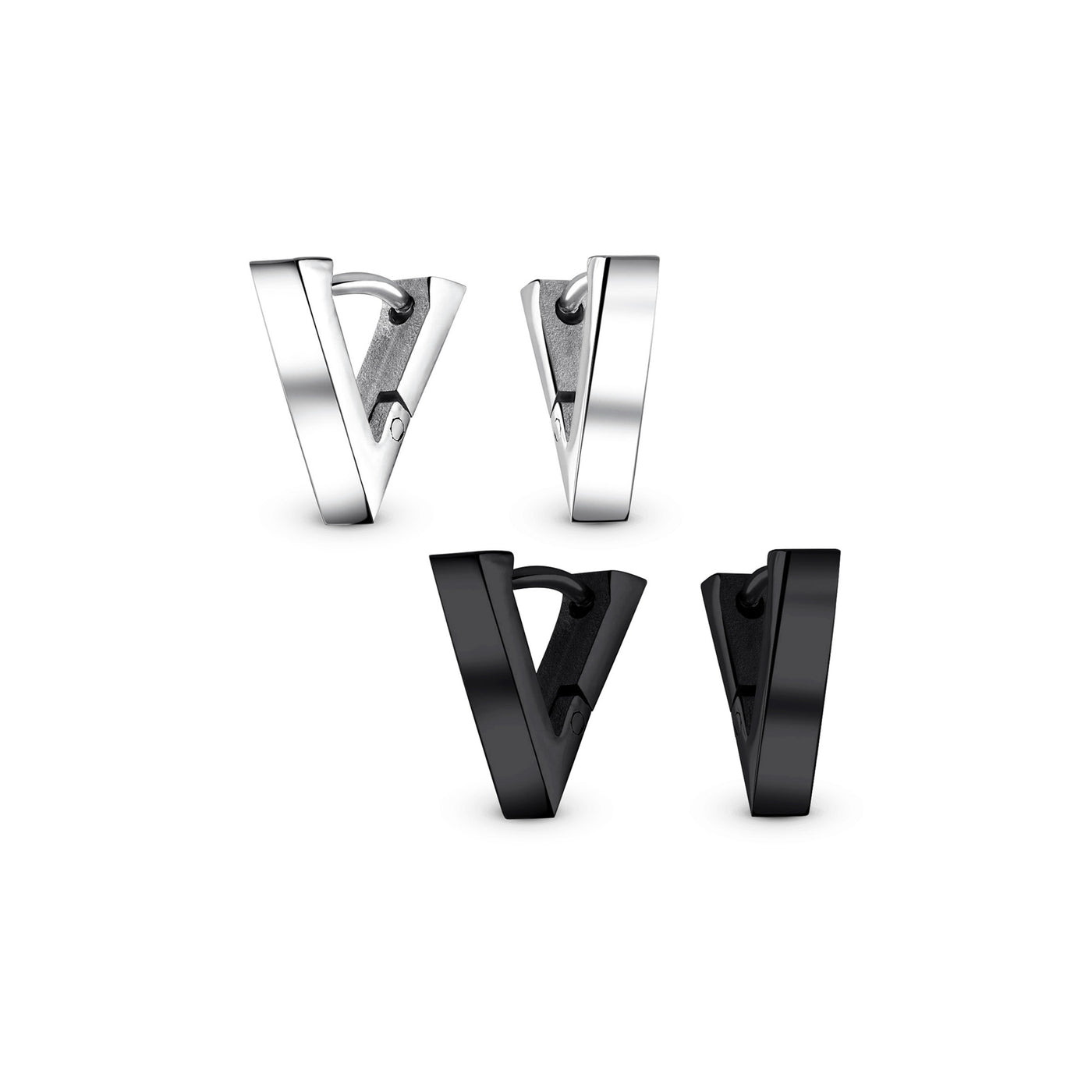 - Opt for bold, geometric style with minimalist appeal with these stainless steel unisex huggie hoop earrings. The sophisticated triangular shape and modern design add polish and edge to any ensemble.
