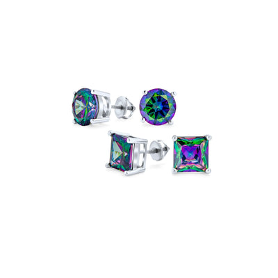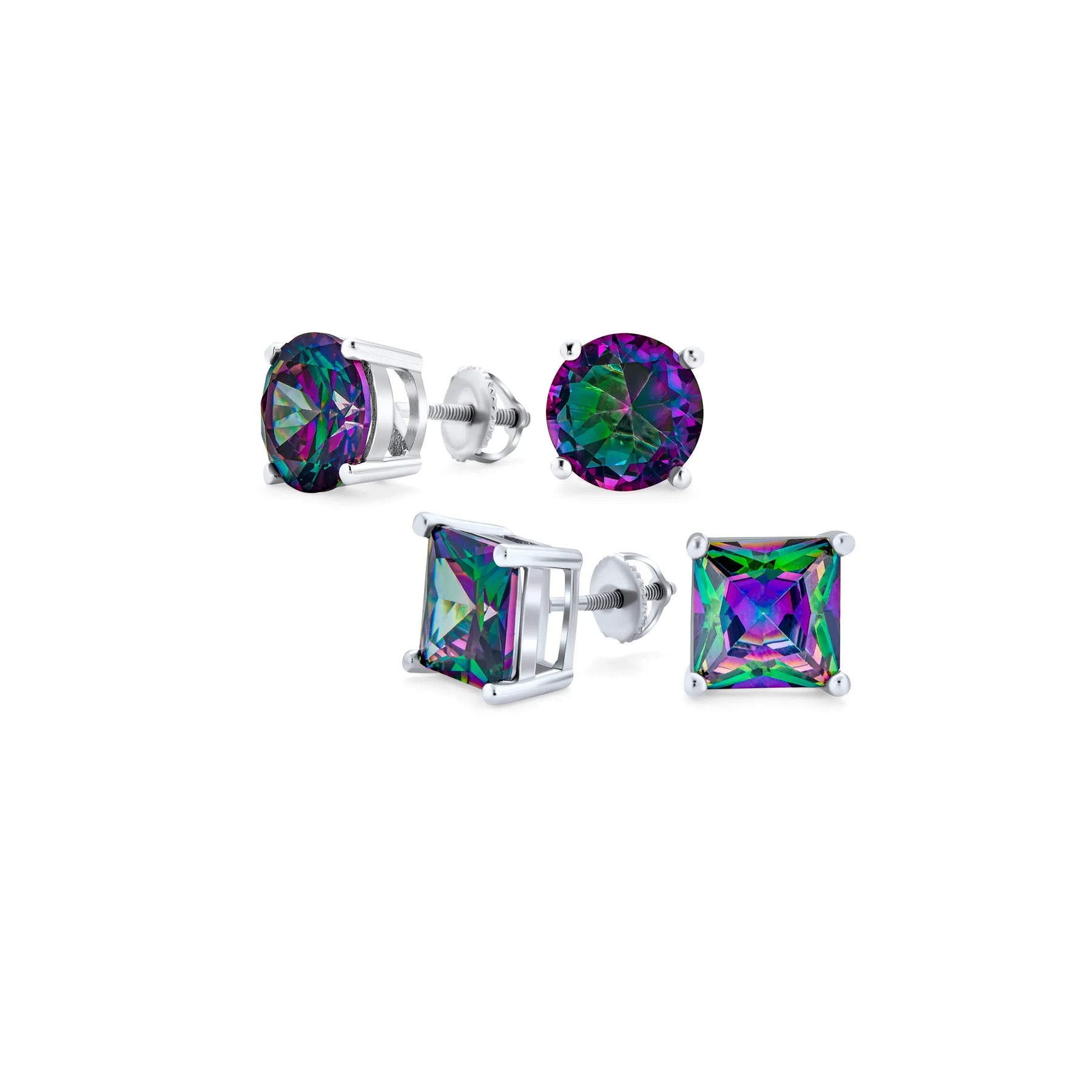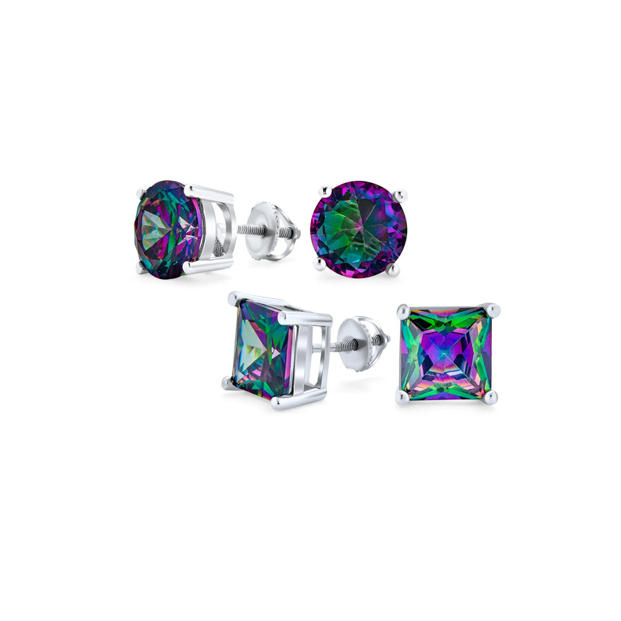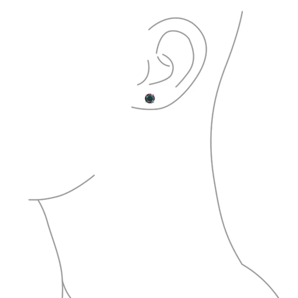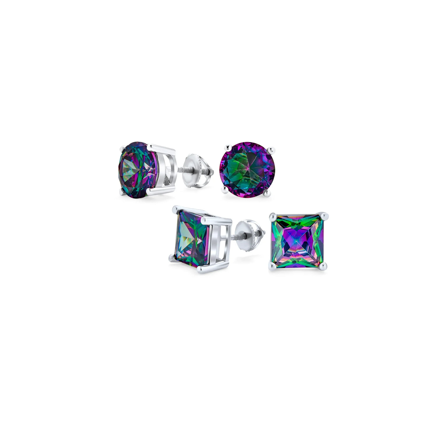 - Featuring a gleaming simulated rainbow topaz CZ, these sterling silver unisex screwback studs offer striking color and timeless style. Perfect for any outfit, our round CZ studs are a versatile choice. Treat yourself or a friend to these luxe simulated rainbow topaz cubic zirconia earrings.