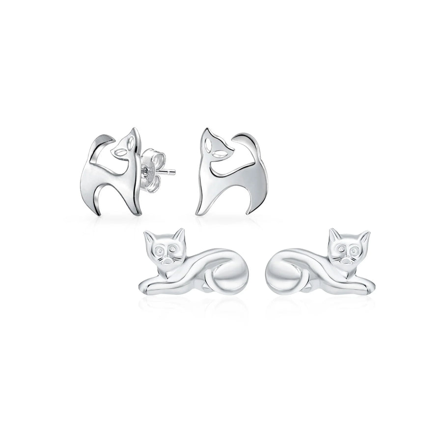 - Adorable sterling silver cat stud earrings for fashionistas and cat lovers. These shiny silver cat studs offer a fresh, modern vibe. A must-have for any jewelry box, adding panache to your style. Secure post with friction back closure ensures all-day comfort. Lightweight at under one gram, perfect for all-day wear. Ideal gift for friends who love animal jewelry.