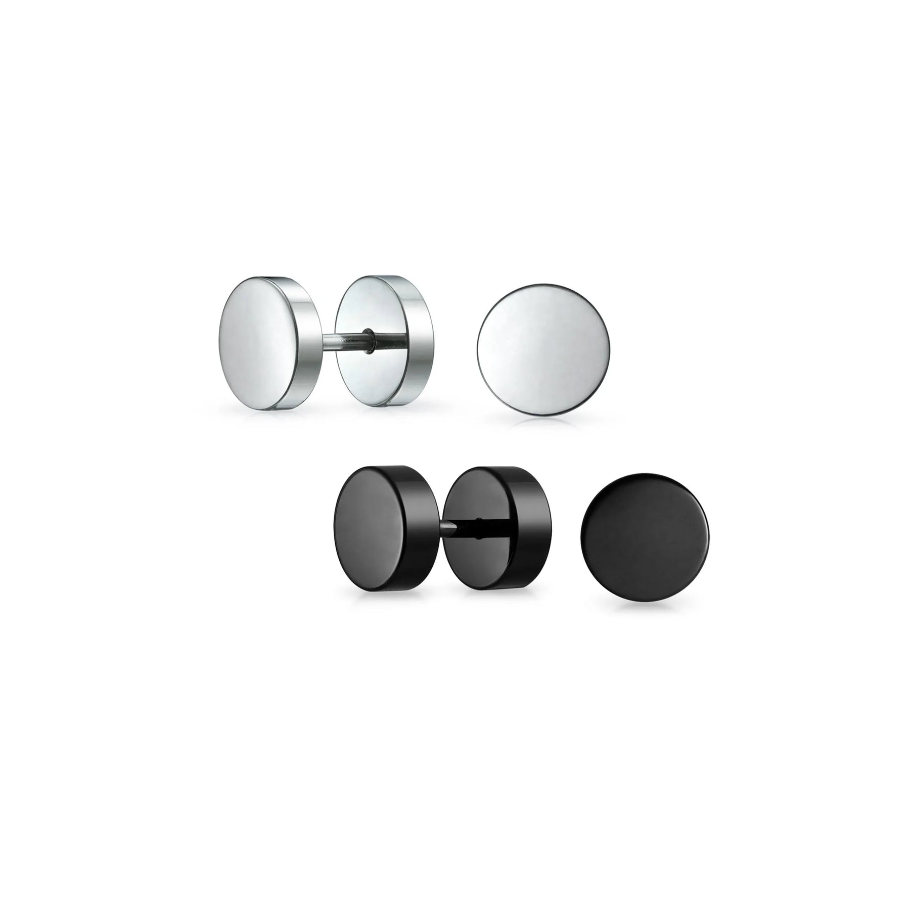 - Add a masculine touch to your look effortlessly. No need to stretch your ear lobes for a trendy ear plug style. Our synthetic ear plugs are easy to use. Simply unscrew the back, push the bar through your pierced ear, and screw it back. Illusion ear plugs fit securely and are lightweight. You won't even feel these stainless steel earrings. Your friends won't notice they're fake plugs. Perfect as a fashionable Father's Day gift. Sold as a pair.