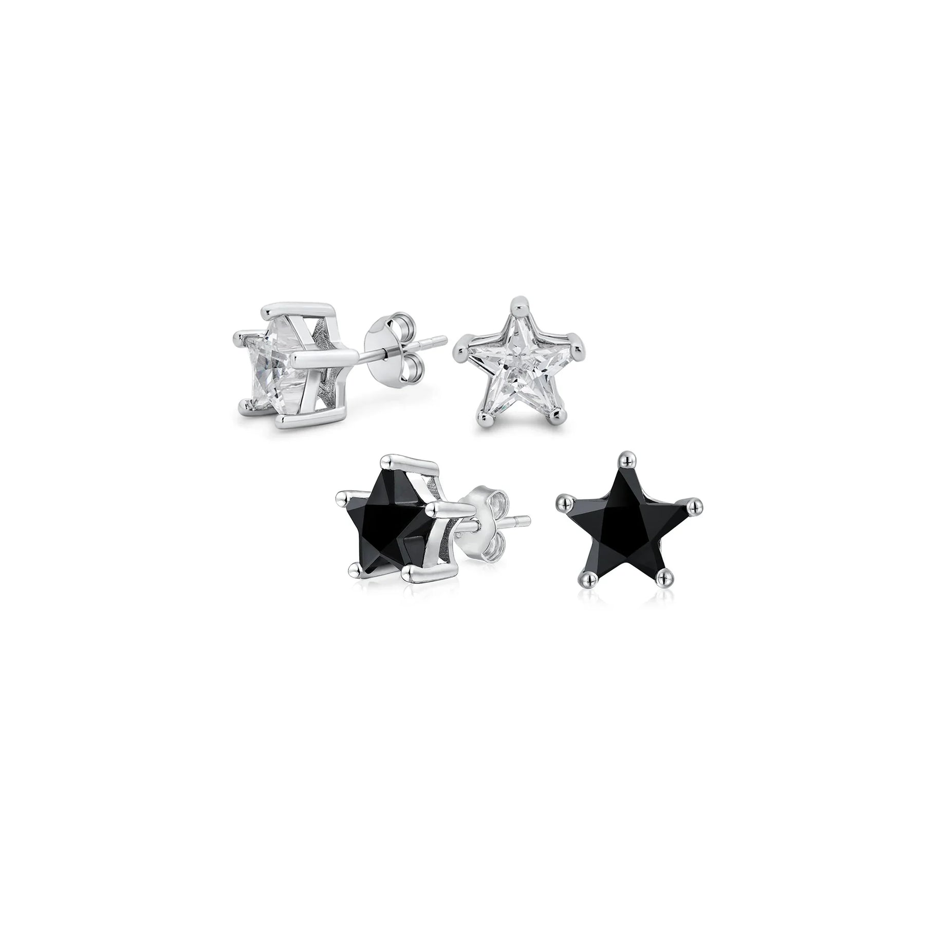 - Shine with our fashionable Silver Unisex Men's CZ Black Star Stud Earrings. Crafted from .925 sterling silver, they feature black cubic zirconia star. These affordable earrings add sparkle to any outfit. Perfect for daytime wear or special occasions. Ideal gift for Father's Day or holiday presents.