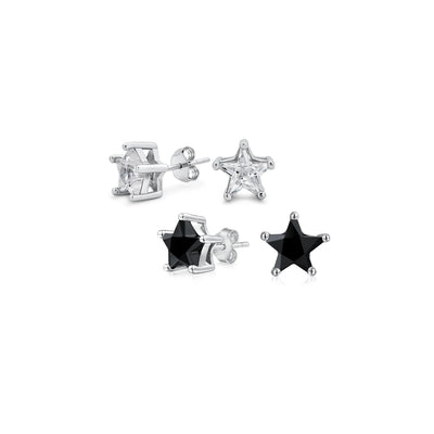 - UNISEX EDGY ROCKER GLAM: Enhance your look with these 7mm star stud earrings featuring black CZ and a silver 4-prong setting. Infuse celestial charm into any outfit, making them a standout addition to your jewelry collection.