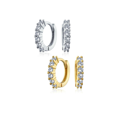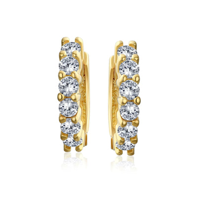 - Elegant and stylish, our Gold Plated hoop earrings for women add effortless sparkle. Perfect for evening wear or casual outfits. These small hoops feature six prong-set clear cubic zirconia stones for a touch of glam. Lightweight and comfortable, you'll barely notice them. Made from 925 sterling silver and Gold Plated for a chic finish. Ideal gift for April birthstone jewelry lovers.