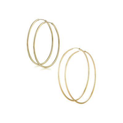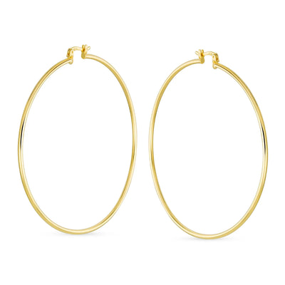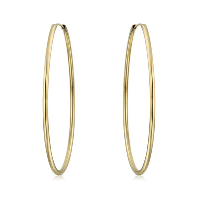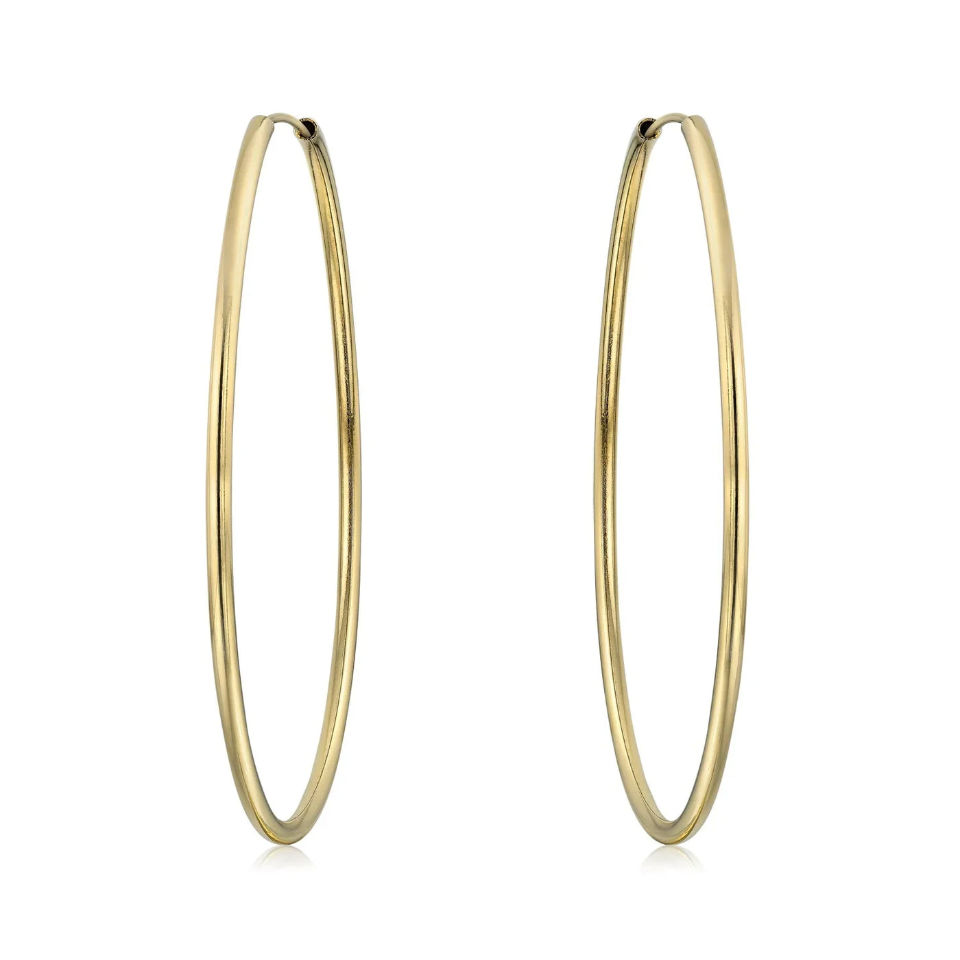 - Discover our dazzling Yellow Gold Plated Brass endless hoops. These large diameter earrings deliver the ultimate wow factor. Trendy and modern, they effortlessly elevate any outfit. Essential for every jewelry box, these fashion-forward tube earrings are a must-have.