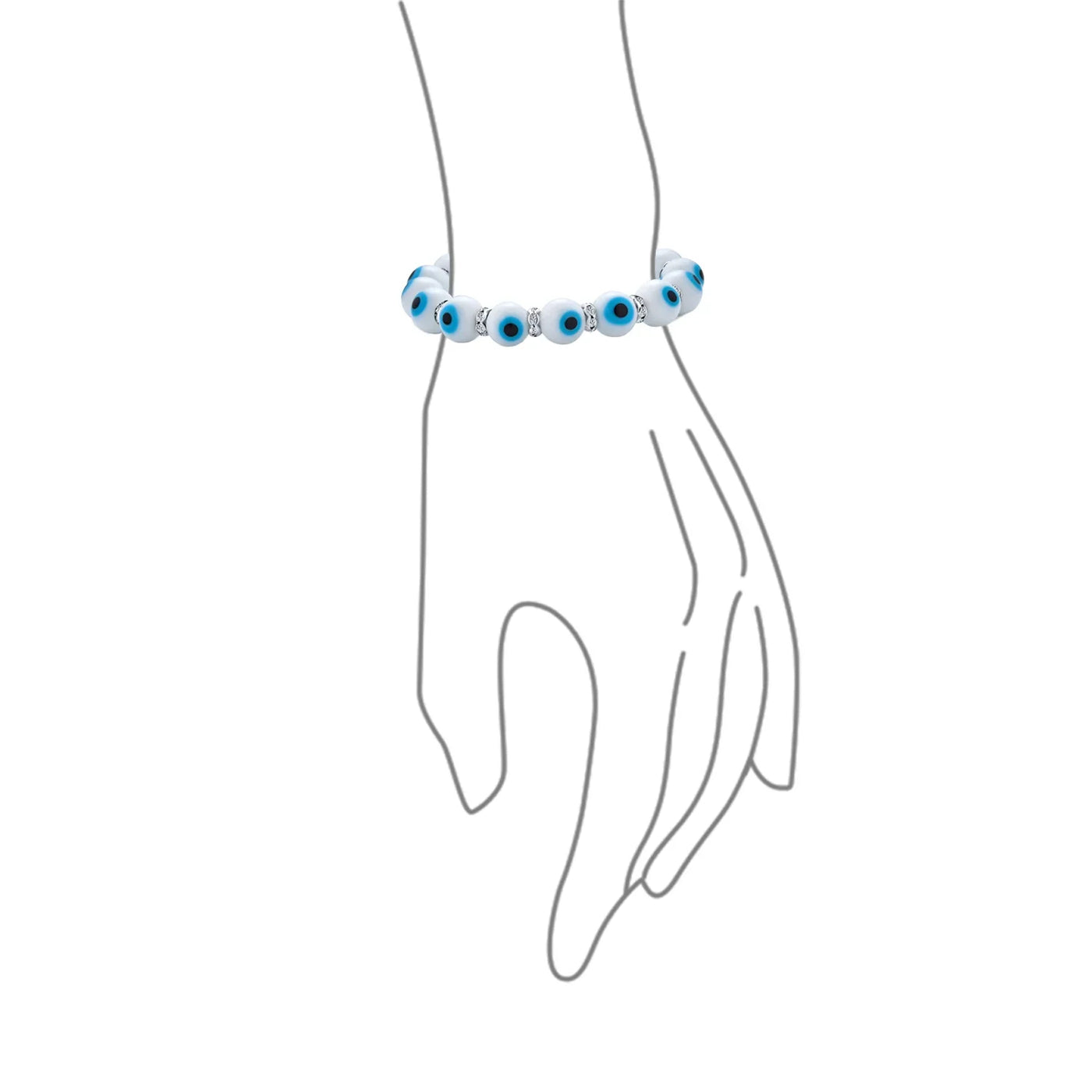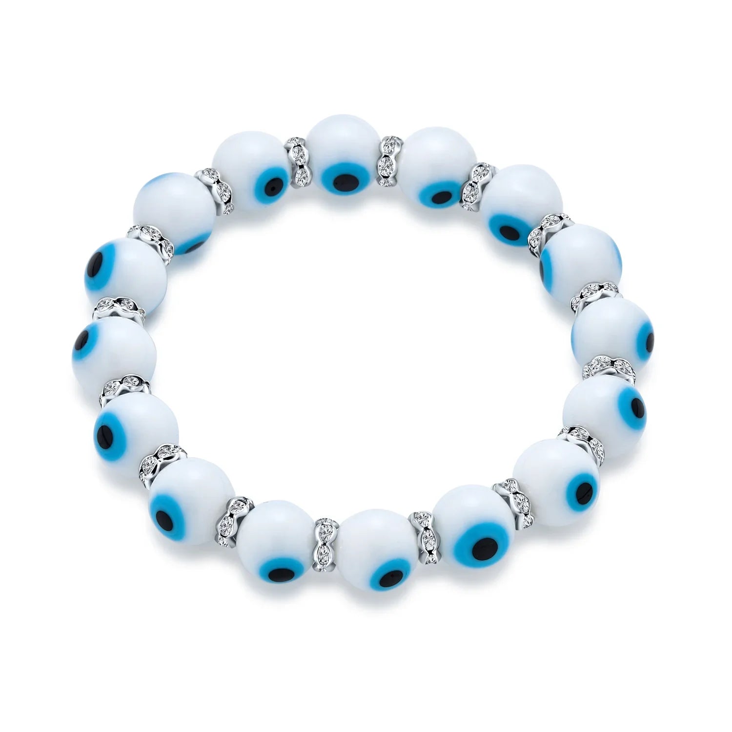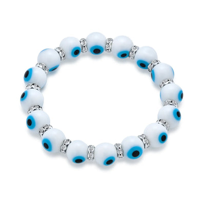 - This red Evil Eye bracelet is a stylish and easy accessory. The cute red glass evil eye bead bracelet features a comfy stretch band, perfect for any occasion. 8MM red evil eye beads with crystal accents add sparkle, making it a versatile go-to. When outfit choices are tough, this bead stretch bracelet adds personality and wards off bad luck effortlessly.