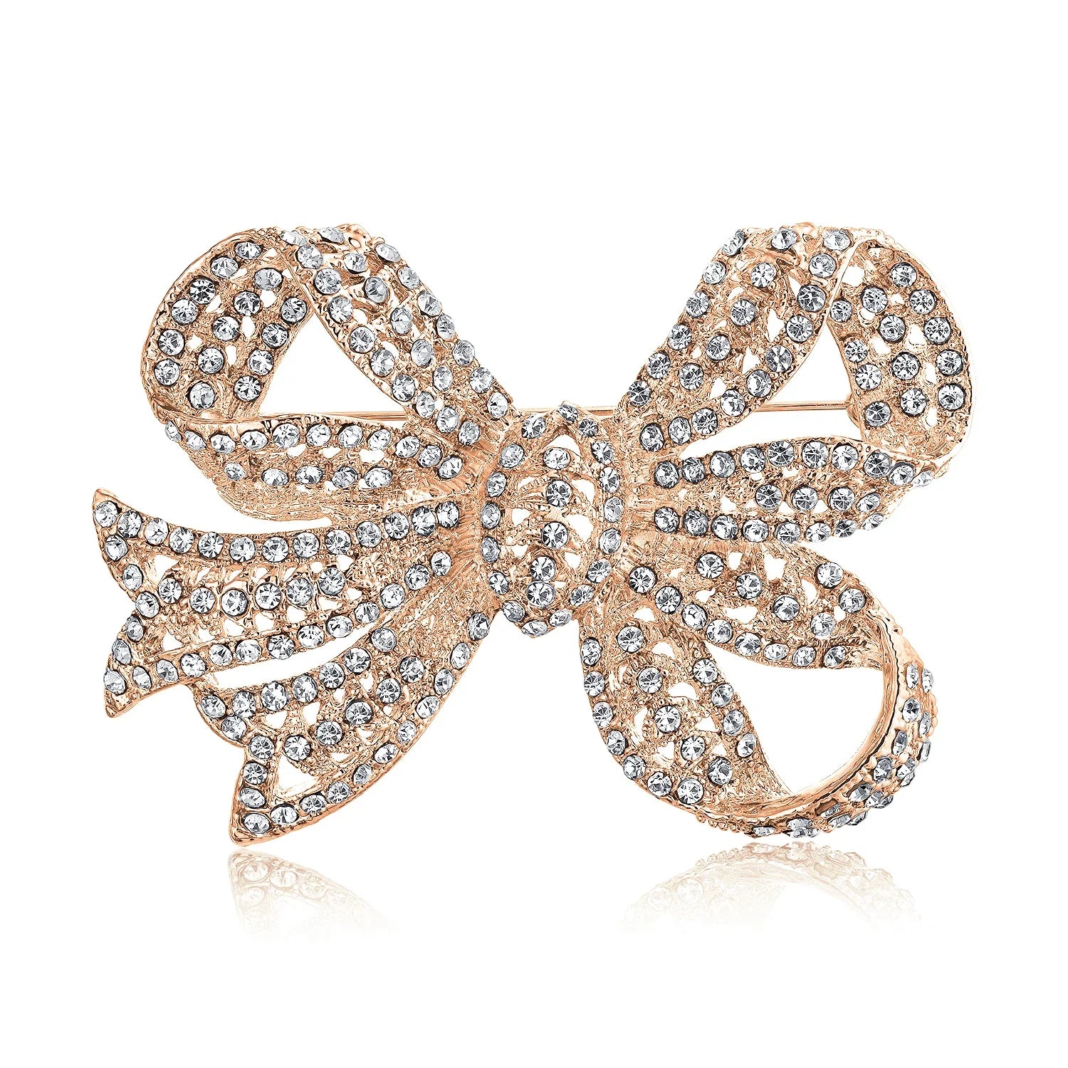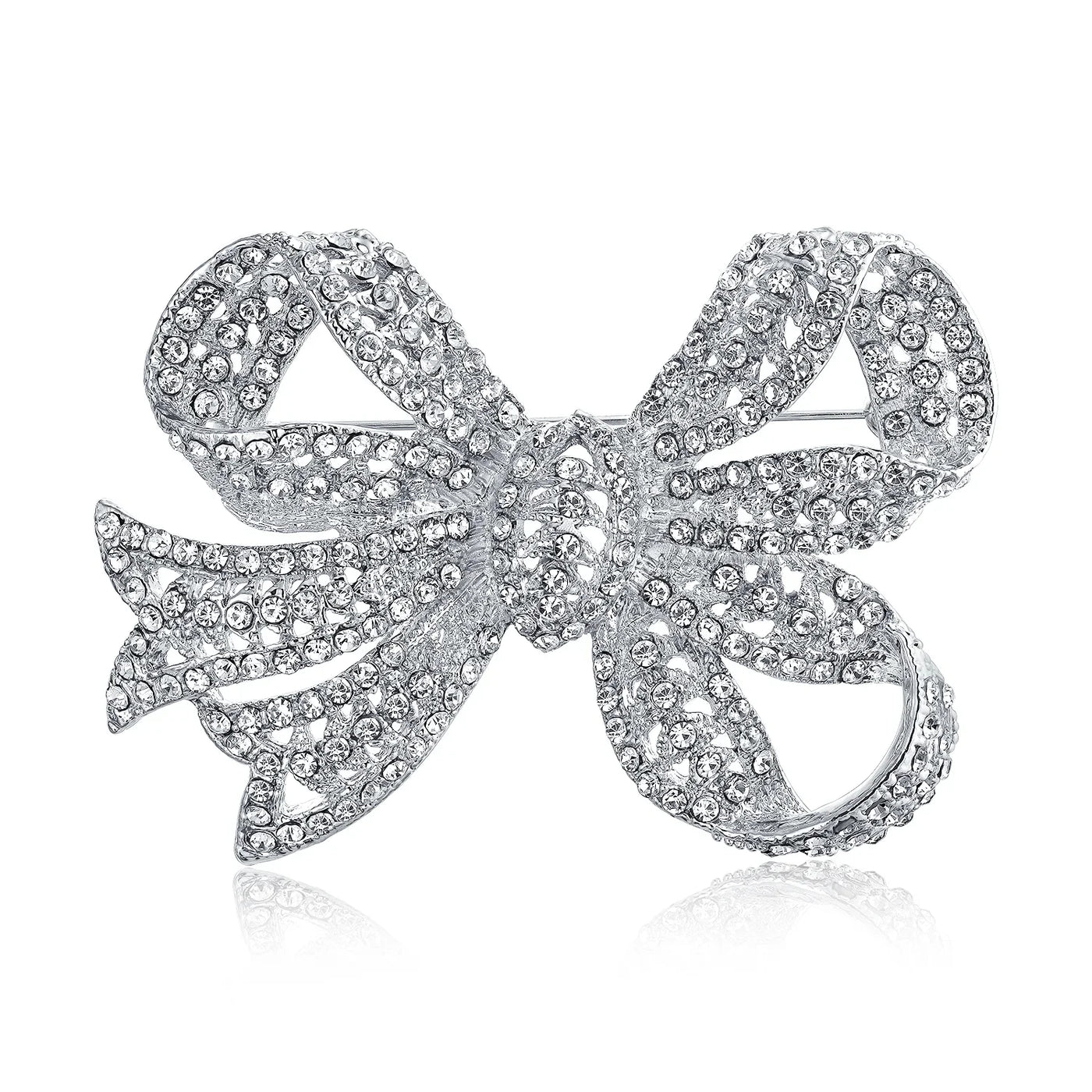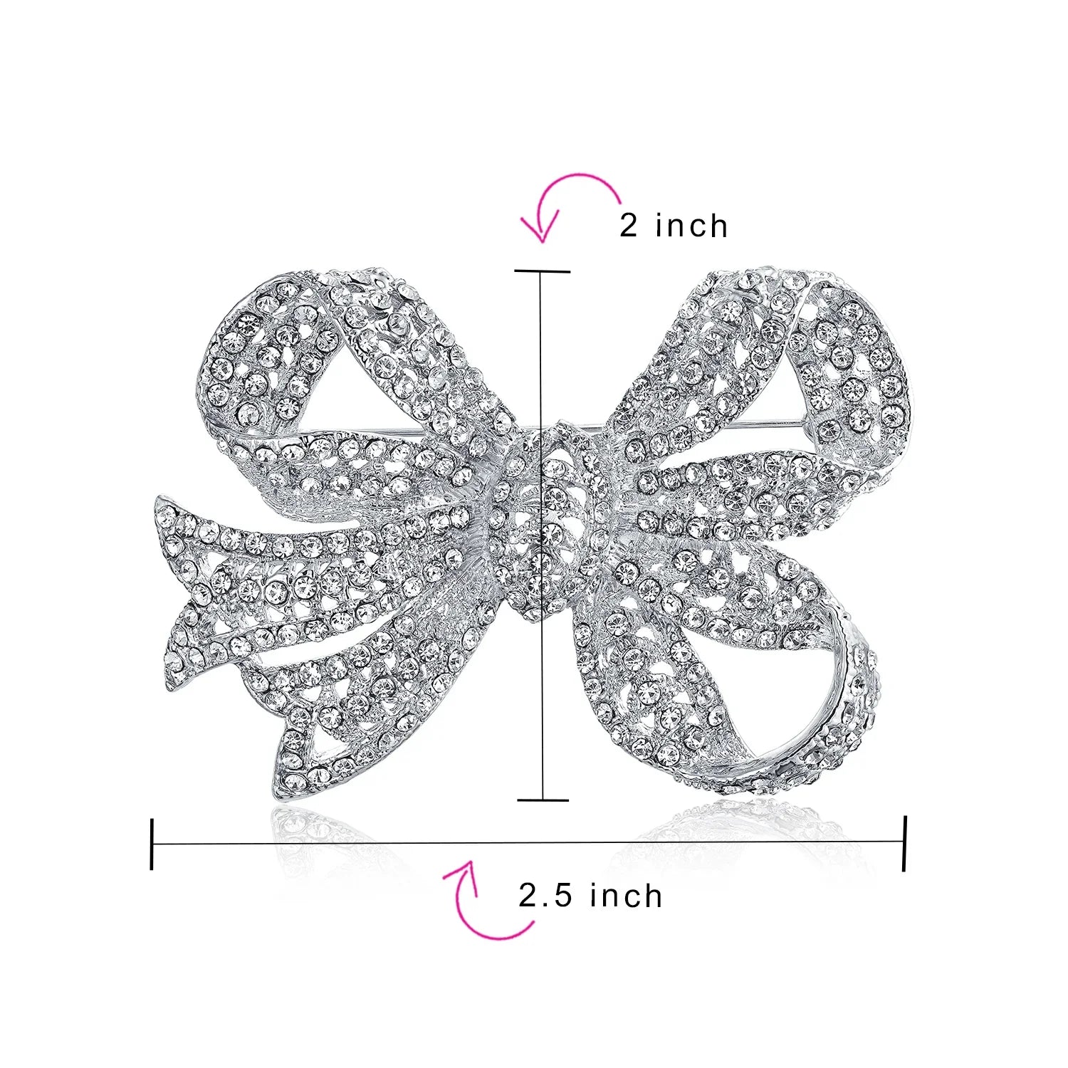- ELEGANT DESIGN - Enhance your wedding or formal event with this charming bow ribbon brooch pin, featuring delicate pave crystal embellishments for a sparkling touch. Perfectly suited for both formal and casual outfits, this vintage-style brooch adds a touch of feminine glamour.