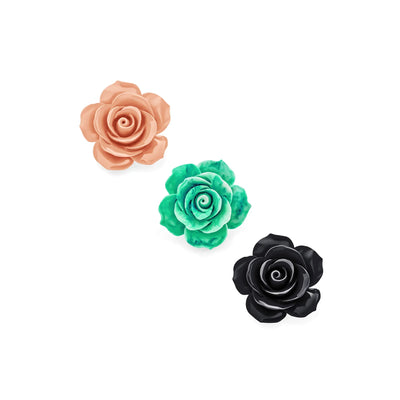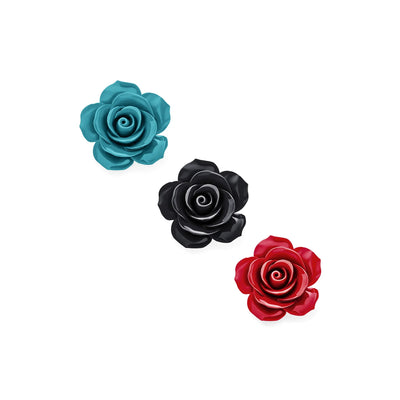 Set of 3 Romantic Floral Blooming 3D Carved Rose Floral Brooch Pin Multi Colors
