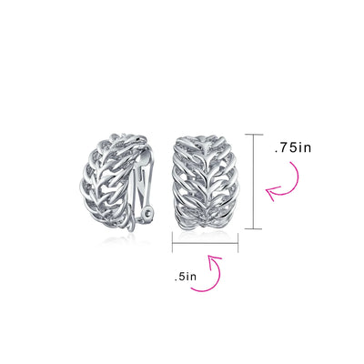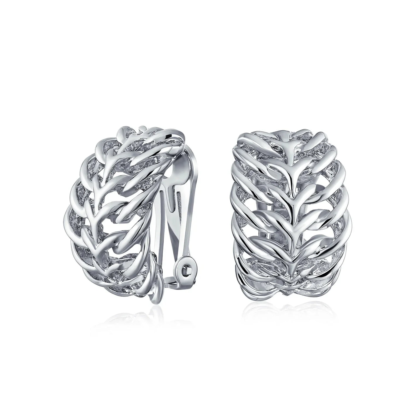 - BEAUTIFUL DESIGN - To take your style up a few notches for day or night, choose these chic clip on, huggie hoop clip on earrings. Featuring an alluring, modern design accented by a rhodium plated brass braids intertwining to form a Celtic love knot motif.